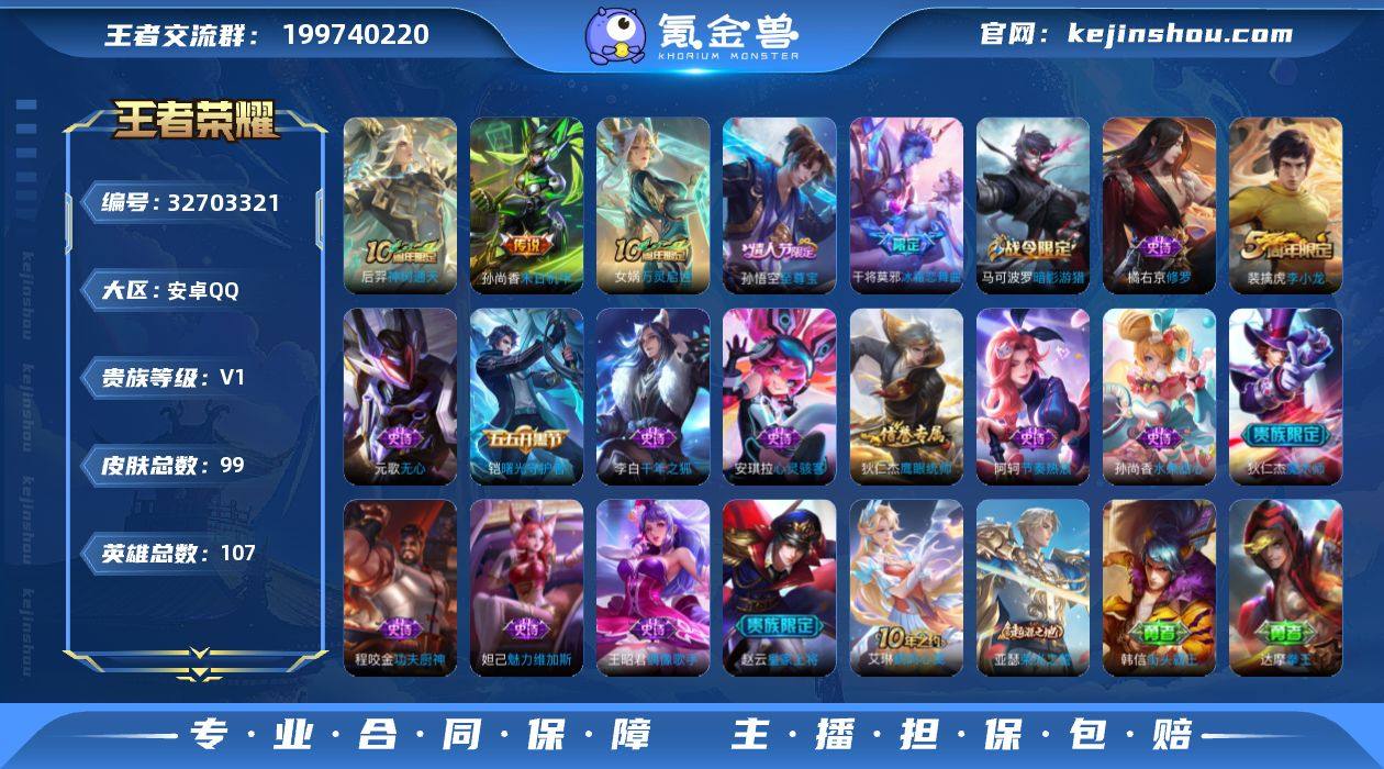 LK2632591安卓Q-V0-至尊星耀III段位-107英雄-99皮肤-2传说-18史诗 【传说皮肤】:后羿神树通天,孙尚香末日机甲 【限定皮肤】:狄仁杰阴阳师,赵云皇家上将,芈月重明,元歌无心,夏侯惇朔风刀,曹操烛龙,典韦穷奇,马可波罗暗影游猎,狄仁杰魔术师,狄仁杰万华元夜,达摩沙漠行僧,项羽海滩派对,老夫子醍醐杖,程咬金演武夺筹,兰陵王金庭之子,孙悟空至尊宝,牛魔御旌,钟馗驱傩正仪,干将莫邪冰霜恋舞曲,鬼谷子原初探秘者,苏烈千军破阵,弈星混沌棋,明世隐疑决卦,裴擒虎李小龙,米莱狄御霄,盾山御銮,猪八戒西部大镖客,艾琳女武神 【赛季限定】:曹操烛龙,芈月重明,典韦穷奇,米莱狄御霄,牛魔御旌,盾山御銮,夏侯惇朔风刀,弈星混沌棋,明世隐疑决卦,老夫子醍醐杖,鬼谷子原初探秘者,狄仁杰万华元夜,程咬金演武夺筹,钟馗驱傩正仪,苏烈千军破阵,达摩沙漠行僧,兰陵王金庭之子,亚瑟荣光之誓 【战令限定】:马可波罗暗影游猎,猪八戒西部大镖客 【史诗皮肤】:女娲万灵启世,元歌无心,裴擒虎李小龙,马可波罗暗影游猎,橘右京修罗,狄仁杰鹰眼统帅,干将莫邪冰霜恋舞曲,阿轲节奏热浪,程咬金功夫厨神,铠曙光守护者,安琪拉心灵骇客,孙悟空至尊宝,李白...