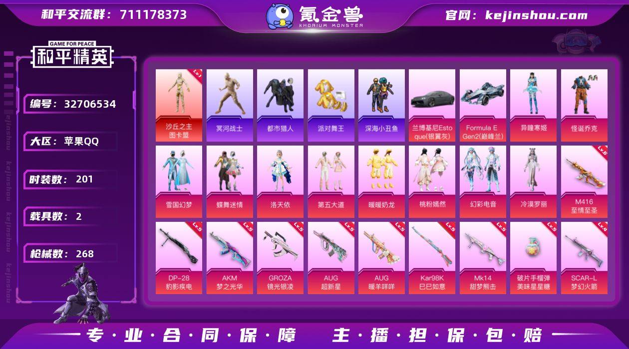 苹果 【极品神装号 沙丘之主-图卡盟(一级)/怪诞乔克/雪国幻梦/浪漫天命/都市猎人/冥河战士/派对舞王/深海小丑鱼/暗影哥特/红熊茄茄/洛天依/AKM-梦之光华(五级)/SCAR-L-梦幻火箭(四级)/M416-至情至圣(六级)/兰博基尼Estoque(银翼灰)/Formula E Gen2(巅峰兰)】手Q-1神装-10粉装-26特效枪-2载具-11粉色飞行器-92770热力值-9王牌印记-201套装-268枪皮 【红色神装等级】:沙丘之主-图卡盟(一级) 【红色角色神装】:沙丘之主-图卡盟 【热门品类】:粉装-怪诞乔克,粉装-雪国幻梦,套装-浪漫天命,套装-都市猎人,套装-冥河战士,套装-派对舞王,套装-深海小丑鱼,套装-小丑鱼,套装-忍者信条,套装-暗影哥特,套装-粉红小猪,套装-软软马卡龙,套装-红熊茄茄 【粉色套装】:粉装-怪诞乔克,粉装-雪国幻梦,粉装-蝶舞迷情,角色-洛天依,粉装-第五大道,粉装-暖暖奶龙,粉装-桃粉嫣然,粉装-幻彩电音,角色-冷漠罗丽,角色-异瞳寒姬 【粉色枪皮等级】:AKM-梦之光华(五级),SCAR-L-梦幻火箭(四级),M416-至情至圣(六级),GROZA-镜光银凌(五级),AUG-超新星(五级),AUG-暖羊咩咩(五级),AUG-圣斗士星矢(一级),UMP45-萌骑冒险(一级),汤姆逊-星月云朵(二级MK12-雪月幻音),AKS-74U...