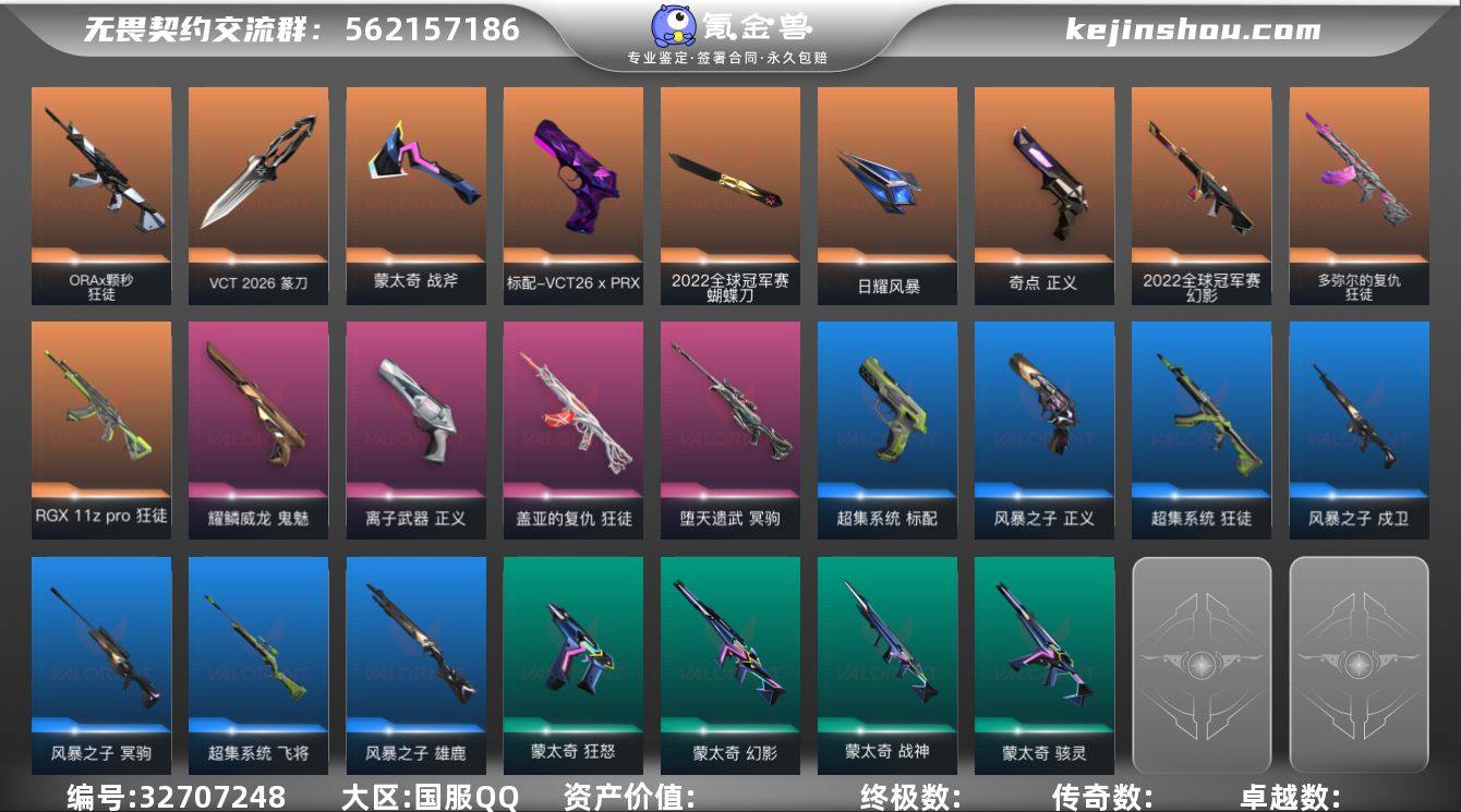 【2限定刀皮肤+4热门狂徒 】精品手慢无系列!【可二次 可秒换绑】L193754 (2022全球冠军赛套装)无畏契约/120级/未定级/19英雄/40皮肤/资产22760/已使用R点635/剩余R点65/2022全球冠军赛-幻影,2022全球冠军赛-蝴蝶刀,VCT-2026-篆刀,蒙太奇-战斧,日耀风暴-遗器,多弥尔的复仇-狂徒,RGX-11z-Pro-狂徒,ORA-x-颗秒-狂徒,盖亚的复仇-狂徒,堕天遗武-冥驹,VCT26-x-PRX-标配,奇点-正义,耀鳞威龙-鬼魅,离子武器-正义