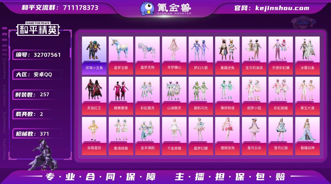 【小姐姐号!】YXc28366-【可二次】【因赛季更新游戏段付以上号为准!】 安卓Q-2载具33粉装18特效枪25热门257套装371枪皮 14印记 历史卓越王牌6星 【2载具】 晶梦灵驹 星梦玉骢 【34粉装】 旋星之夜 蜜语粉晶 梦幻火箭 蜜语绒猫 宝贝奶油派 天使彩虹糖 虹云熊熊 小舞恋语 小舞雪昙 小舞灵珑 小舞 千金淑猫 雪月幻音 金丰海韵 樱桃泡泡 星穹咏叹调 冷漠罗丽 羊梦糖心 呆萌星弥 智耀战神 晶梦幻蝶 星月云朵 第五大道 童趣迷兔 冰霜白皇 炙焰红王 甜梦小狐 彩虹甜喵 蝶舞蔷薇 薄荷物语 山涧鹿灵 彩虹鹿灵 碧影闪光 极地冰晶 【19特效枪】 M416-心之恋语 (7级) AKM-甜心宝贝 (2级) AKM-炫紫旋律 (7级) AKS-74U-星穹咏叹调 (7级) Kar98K-巳巳如意 (5级) SPAS-12-蜜语绒猫 (3级) DP-28-千金淑猫 (5级) DP-28-豹影疾电 (5级) MK12-雪月幻音 (5级) AMR-智耀战神 (5级) GROZA-精灵之光 (3级) UZI-筑梦精灵 (7级) M417-第五大道 (7级) M16A4-晶梦幻蝶 (2级) SLR-暗夜玫瑰 (4级) UMP45-萌骑冒险 (4级) 平底锅-喜羊羊与灰太狼 (2级) 撬棍-小舞 (2级) M249-霁蓝缠春(5级) 【25热门】 龟仙人 浪漫假日 晶辉守护 糯粉咩咩 软萌银虎 奶芙汪汪 恶魔喵喵 深海小丑鱼 梦起落英 暗夜契约 怪笑...