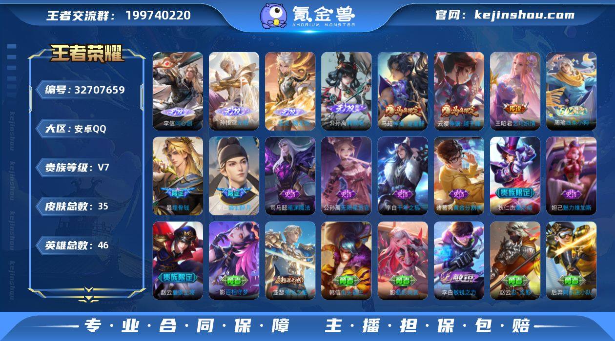 【aswz1846】安卓Q-V7-最强王者段位-46英雄-35皮肤-4无双-3传说-9史诗 【英雄全皮】:影全皮 【无双皮肤】:李信问心剑,孙悟空无相,曜器灵螭龙剑,公孙离离恨烟 【传说皮肤】:云缨神骥越千峰,马超神骥逐星野,王昭君乞巧织情 【限定皮肤】:公孙离离恨烟,暃埋骨钱,李白谪仙醉月,狄仁杰阴阳师,赵云皇家上将,狄仁杰魔术师,项羽海滩派对 【赛季限定】:亚瑟荣光之誓 【战令限定】:周瑜线条小狗 【史诗皮肤】:周瑜线条小狗,李白谪仙醉月,暃埋骨钱,司马懿暗渊魔法,公孙离无限星赏官,诸葛亮黄金分割率,李白千年之狐,妲己魅力维加斯,狄仁杰魔术师,赵云皇家上将 【其他皮肤】:影百相守梦,亚瑟荣光之誓,影魅影绮裳,李白敏锐之力,诸葛亮掌控之力,狄仁杰阴阳师,后羿阿尔法小队,张飞五福同心,安琪拉玩偶对对碰,赵云忍炎影,韩信街头霸王,项羽海滩派对,暃碧珀绯影,澜孤猎,马超幸存者,上官婉儿修竹墨客,司马懿魇语军师,公孙离花间舞 【营地ID】:1573926627