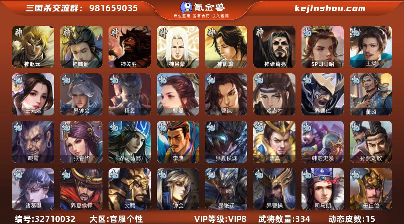 神赵云,神陆逊,神诸葛亮,SP司马昭,王粲,王元姬,界钟会,曹婴,曹纯,戏志才,程昱,诸葛瞻,张星彩,界黄忠,骆统,界朱然,界徐盛,界步练师,左慈,张让,麹义,沮授,卑弥呼,兀突骨,士燮,神吕蒙,神周瑜,神关羽,SP关羽,SP曹仁,SP蔡文姬,乐进,曹昂,诸葛诞,朱灵,文聘,SP姜维,张春华,钟会,曹冲,郭淮,满宠,界王异,界曹操,界司马懿,界夏侯惇,界张辽,界许褚,界郭嘉,李典,曹真,韩浩史涣,陈群,曹叡,曹休,钟繇,司马朗,王基,李通,郭皇后,孙资刘放,辛宪英,吕虔,鲁芝,界典韦,界荀彧,杜畿,界曹丕,毌丘俭,界邓艾,界曹植,界满宠,卞夫人,华歆,蔡贞姬,毛玠,阮慧,谋徐晃,界曹休,界夏侯渊,界曹仁,臧霸,唐咨,董昭,SP孙尚香,关银屏,夏侯霸,马良,关兴张苞,廖化,界马岱,关平,简雍,刘封,界法正,界关兴张苞,界刘备,界关羽,界张飞,界赵云,界马超,SP徐庶,吴懿,周仓,张松,刘谌,夏侯氏,糜竺,马忠,孙乾,李严,黄皓,吴苋,秦宓,界黄月英,界诸葛亮,赵统赵广,严颜,界伊籍,界卧龙诸葛,界庞统,界祝融,陈到,界姜维,吕凯,杨仪,邓芝,...