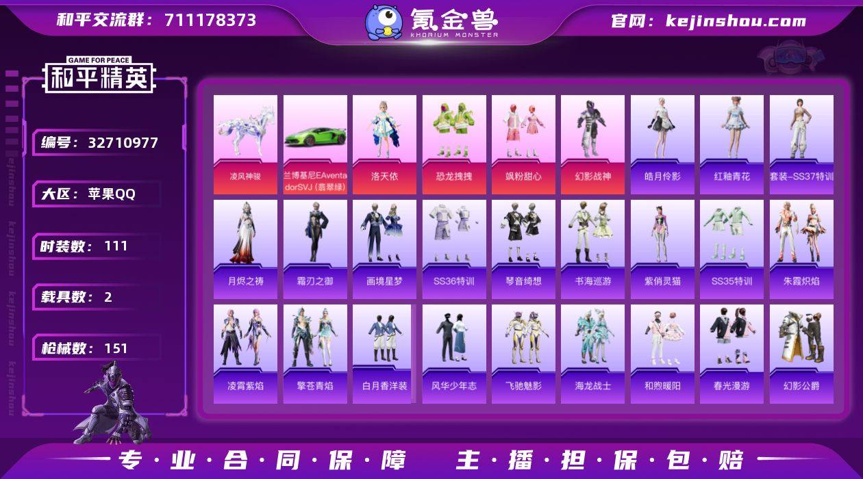 【和平精英】4粉装,7特效枪,2载具,历史最高段位:无敌战神 王牌印记14次 热力值:87953,173套装,264枪械,304装备,130战备;套装:沙丘之主-图卡盟,套装-幻影战神,角色-洛天依,套装-恐龙拽拽,套装-飒粉甜心,套装-特训学院,套装-蓝色运动,套装-白色伏地魔,套装-竞技名士,套装-深蓝色名流,套装-猛禽,套装-长空猛禽,套装-漫步者,套装-黎明保卫者,套装-旭日情侣,套装-六六大吉,套装-冷焰舞者,套装-水银刺客,套装-浪漫天命,套装-特殊使命,套装-沙漠毒蛇,套装-鹰眼刺客,套装-冰冻风暴,套装-冷酷挑战者,套装-完美偶像,套装-幻影武者,套装-摇滚战魂,套装-特战英豪,套装-街头潮人,套装-神秘领域,套装-魅力单车,套装-绮丽涂鸦,套装-耀眼新星,套装-狂沙舞者,套装-破晓战魂,套装-荣耀,套装-风行保卫者,套装-热血青春,套装-潮流炫酷,套装-沙漠兵团,套装-雪山精英,套装-蓝调潮人,套装-暗影哥特,套装-弄潮海豚,套装-迅捷狂鲨,套装-夏日倾情,套装-缤纷果语,套装-Alan Walker,套装-风暴特警,套装-冰川特警,套装-幻影公爵,套装-忍者信条,套装-格斗先锋,套装-海上生明月,套装-暗夜之虎,套装-黑夜传说,套装-粉红小猪,套装-破蛋小黄...