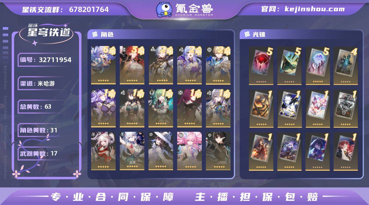 2命白厄,2命鸟,满命白露,1个金灵,4个光锥碎忆,无星琼