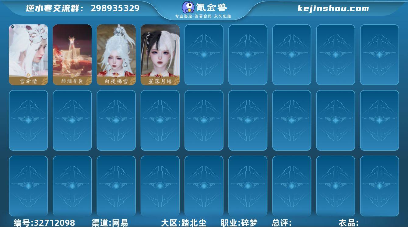 碎梦【凭栏听雨】【已用天赏石4】, 副本外观2, 灵韵1, 2国色, 147935衣品, 21560国色值, 160套时装