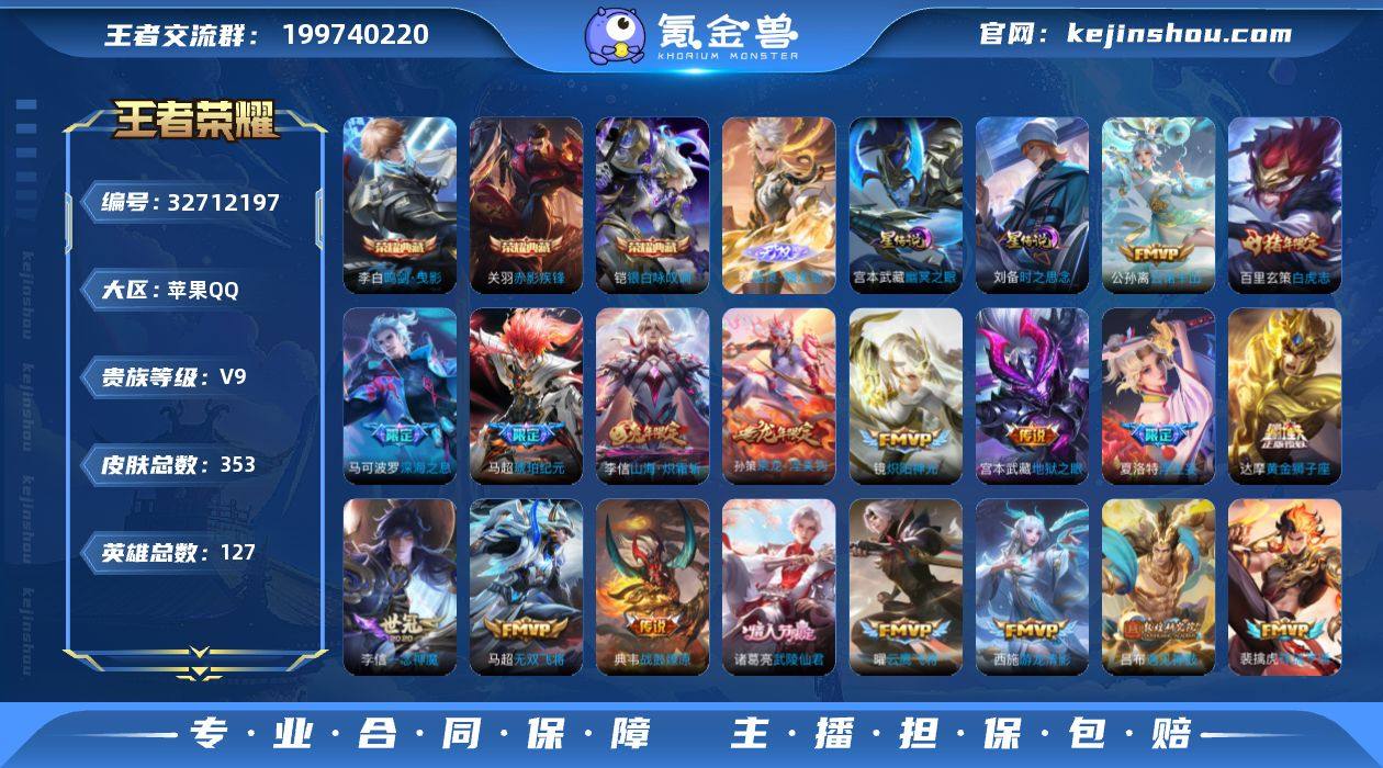 ·赤影疾锋·银白咏叹调·器灵螭龙剑·黛西宝灵宝·神骥越千峰·神骥逐星野·白虎志·花木兰异界灵契·死亡执政官·星之鸣奏·愿照山河定·愿照九州拓·霜北刀·乘龙淬吴钩·马超琥珀纪元·浮生妄·山海炽霜斩·深海之息·无二次包过】w21056-苹果Q-127英雄-353皮肤-11王者印记-195铭文-贵族积分11w【贵族9】【3典藏·1无双·2星传说·40传说·1天幕·45按键】【因赛季更新游戏段付以上号为准!】 【英雄全皮】:刘禅全皮,孙权全皮,苍全皮,大司命全皮,敖隐全皮,鲁班大师全皮,蒙恬全皮,阿古朵全皮,夏洛特全皮,司空震全皮,赵怀真全皮,戈娅全皮,少司缘全皮 【荣耀典藏】:李白鸣剑曳影,关羽赤影疾锋,铠银白咏叹调 【无双皮肤】:曜器灵螭龙剑 【星元皮肤】:刘备时之思念,宫本武藏幽冥之眼 【天幕】:共赏芳华天幕 【传说皮肤】:云缨神骥越千峰,马超神骥逐星野,花木兰异界灵契,杨戬纵目迁山,后羿神树通天,曹操万灵伏威,大司命死亡执政官,公孙离云诺千山,杨玉环星之鸣奏,司空震愿照山河定,澜愿照九州拓,云缨幻光神枪,裴擒虎祥瑞亨通,桑启鸣野蒿,夏侯惇霜北刀,典韦战鼓燎原,孙策乘龙淬吴钩,马超琥珀纪元,兰陵王影龙天霄,吕布遇见神鼓,马可波罗妄想实况,诸葛亮鹤羽星尊...