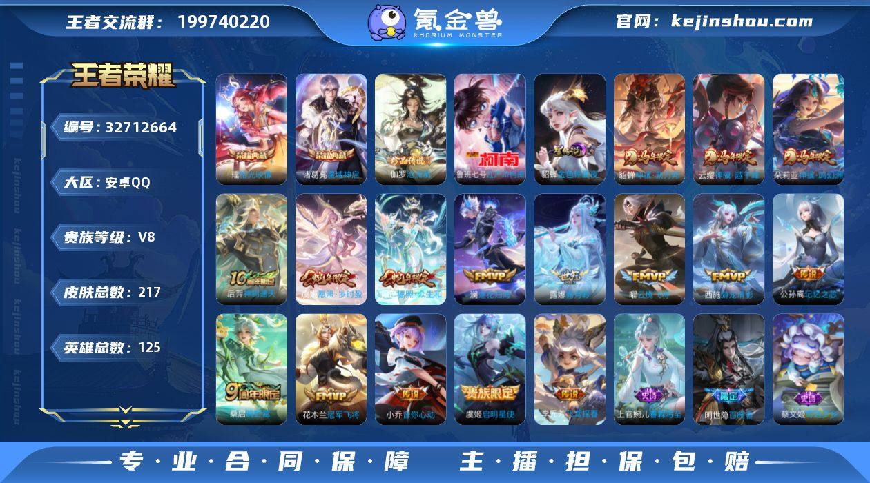 【精品小女号·拾光映像·星域神启·江户川柯南·沧流箭·神骥越千峰·神骥鸣幻洲·神骥聚万邦·愿照众生和·愿照岁时盈·霜月吟·记忆之芯·游龙清影·小乔音你心动·飞鸢探春·乘龙忆丹青·无二次包过】YXw21519-安卓Q-125英雄-217皮肤-4王者印记-173铭文-贵族积分5w【贵族8】【2典藏·2珍品·1星传说·16传说·25按键】【因赛季更新游戏段付以上号为准!】 【英雄全皮】:敖隐全皮 【荣耀典藏】:诸葛亮星域神启,瑶拾光映像 【珍品传说】:伽罗沧流箭,鲁班七号江户川柯南 【星元皮肤】:貂蝉金色仲夏夜 【传说皮肤】:云缨神骥越千峰,朵莉亚神骥鸣幻洲,貂蝉神骥聚万邦,后羿神树通天,妲己愿照众生和,虞姬愿照岁时盈,桑启鸣野蒿,澜逐花归海,露娜霜月吟,公孙离记忆之芯,西施游龙清影,小乔音你心动,李元芳飞鸢探春,虞姬启明星使,曜云鹰飞将,花木兰冠军飞将 【限定皮肤】:姜子牙天穹之誓,狄仁杰阴阳师,赵云皇家上将,孙尚香蔷薇恋人,庄周高山流水,元歌无心,甄姬落雪兰心,狄仁杰魔术师,项羽海滩派对,安琪拉魔法小厨娘,李元芳云中旅人,虞姬启明星使,鬼谷子五谷丰年,沈梦溪大漠名商,裴擒虎擒涛扼浪,鲁班大师探海日志,桑启海盐诗旅,艾琳女武神,阿古朵江河有灵,张良古...