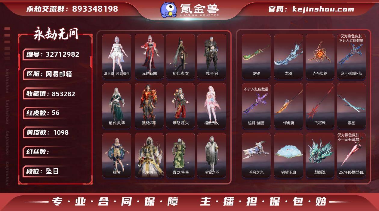 胡桃3红皮,迦南谪星卖号附赠有两孔一孔红的,有张免费开启赛季通行证,还有两个月的白泽。可以砍价!!!