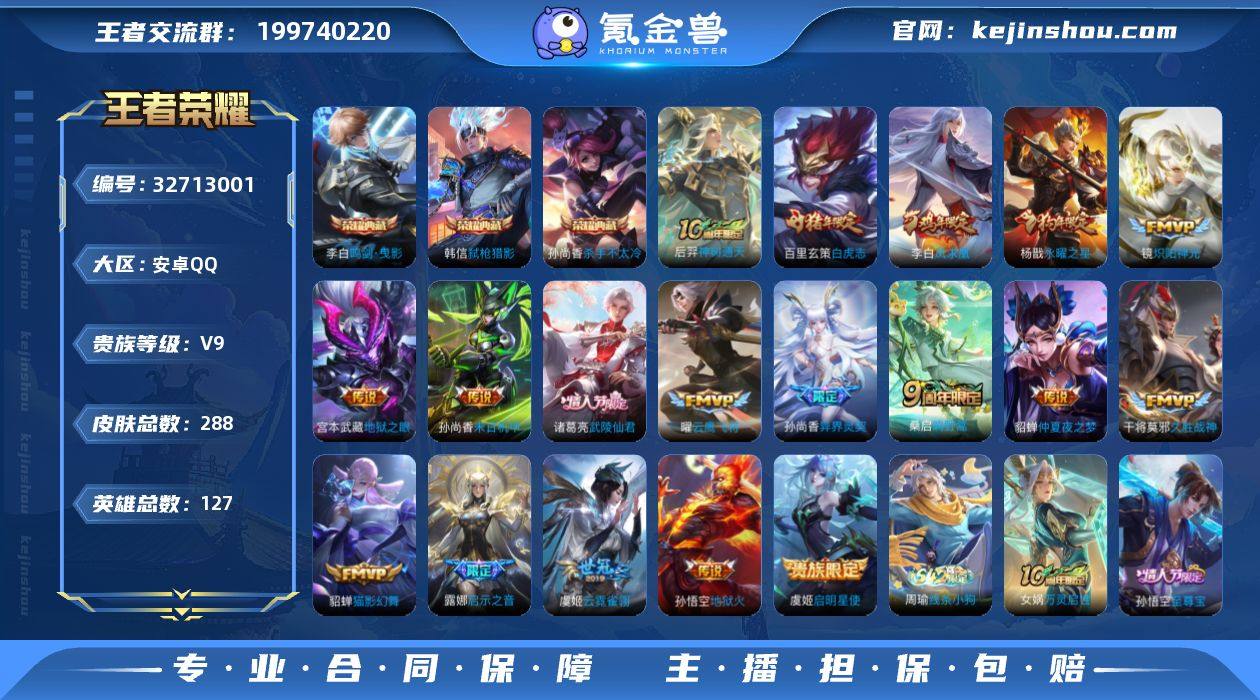 【WZSA1492】贵族9/皮肤288/典藏3/传说18/史诗81/英雄127/杀手不太冷/鸣剑·曳影/弑枪猎影/神树通天/鸣野蒿/启示之音/异界灵契/炽阳神光/启明星使/云鹰飞将/猫影幻舞/久胜战神/云霓雀翎/白虎志/永曜之星/武陵仙君/仲夏夜之梦/凤求凰/末日机甲-孙尚香/地狱之眼/地狱火/狰(s8)/蔡文姬夏日便利店/虞姬夏日便利店/天穹之誓(s36)/阴阳师/凯尔特女王(s7)/皇家上将/神迹守卫-墨子/优雅恋人/蔷薇恋人/狮舞东方/高山流水/死亡摇滚/炼金王(s6)/夜都怪侠/重明(s11)/幻夜卜梦/赤莲之焰/云间偶戏/无心/朔风刀(s17)/游园惊梦/烛龙(s10)/穷奇(s12)/蓝屏警告/魔术师/万华元夜(s22)/沙漠行僧(s26)/海滩派对/醍醐杖(s20)/航海奇遇记/演武夺筹(s23)/驯魔猎人/金庭之子(s27)/潮玩骑士王/至尊宝/大圣娶亲/御旌(s15)/圣弓游侠/云中旅人(s29)/霸王别姬-虞姬/神迹守卫-钟馗/驱傩正仪(s24)/遇见飞天/朔望之晖/真爱魔法/黎明之约/繁星吟游/饕餮(s9)/原初探秘者(s21)/五谷丰年/火炮绅士/千军破阵(s25)/原初追遂者/混沌棋(s18)/顽趣-梦奇/大漠名商(s28)/疑决卦(s19)/吟游魔法/天狼狩猎者/李小龙/擒涛扼浪(s31)/御狮(s13)/御霄(s14)/纤云弄巧/御銮(s16)/梁祝/探海日志(s32)/海盐诗旅(s30)/古海寻踪(s33)/蒙恬...