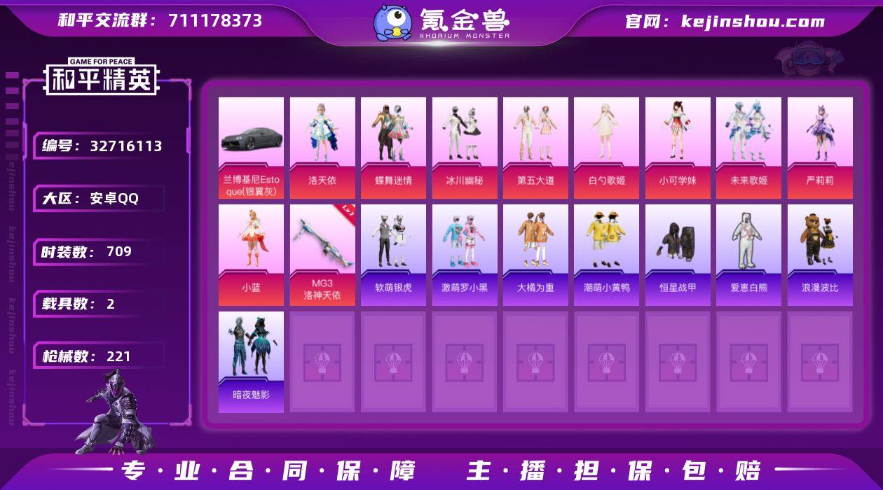 13粉装 5特效枪 2载具 13印记 可二次 可修改实名 【热门装扮】霁蓝缠春,洛天依,蝶舞迷情,冰川幽秘,第五大道,呆萌星弥,白勺歌姬,小可学妹,未来歌姬,严莉莉,美雪,美琪,小蓝,软萌银虎,激萌罗小黑,大橘为重,潮萌小黄鸭,恒星战甲,爱崽白熊,浪漫波比,暗夜魅影 【载具】暮色幽蹄,兰博基尼Estoque(银翼灰) 【稀有枪皮】14-樱桃泡泡,Kar98K-巳巳如意,AKM-暮色玫影,DP-28-豹影疾电,MG3洛神天依 【七级特效枪】七级14-樱桃泡泡,七级MG3-洛神天依 【五级特效枪】五级Kar98K-巳巳如意,五级DP-28-豹影疾电 【三级特效枪】三级AKM-暮色玫影 【紫色装扮】狂鲨锋刃,SS34特训套装,SS3特训,SS5特训,冷焰舞者,人气偶像,军械专家,SS33特训套装,霓虹热舞,SS30特训套装,SS31特训套装,青涩时光,旭日情侣,千禧之恋,北国孤狼,极速红龙,柠萌假日,格斗先锋,海岛探路者,滨海假日,滨海厨神,幻世战舞者,吉莉礼服,圣诞大吉,夏日音浪,夜莺强袭者,怒火燎原,战地菁英,探宝勇士,异彩先驱,SS18特训,浓情蜜辣,飞驰魅影,音速流光,SS19特训,电音精灵,天籁歌者,瑞龙福将,团圆交子,SS17特训,SS23特训,SS22特训,田园牧歌,轻风白浪,和煦暖阳,灰色格斗者,甜心亚梦,虚音幻奏,猎梦纪元,SS20特训,娇憨猪猪,萌趣咩咩,暖心熊熊,S...