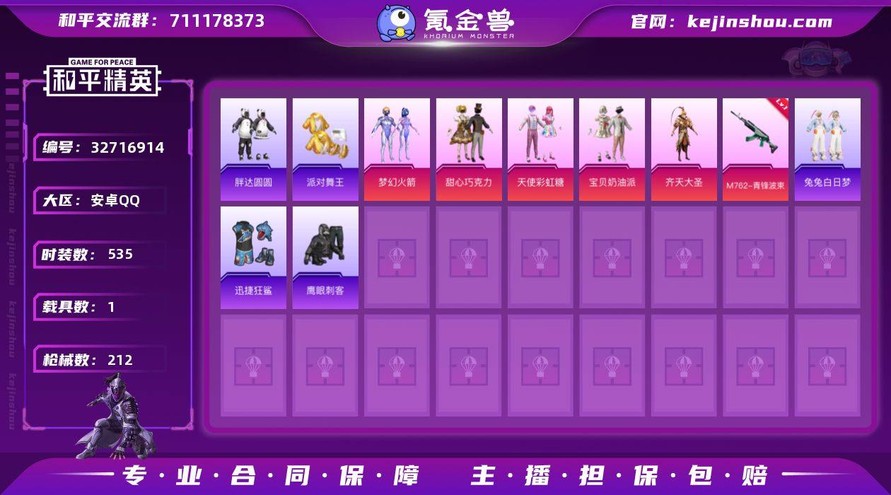 【稀有枪皮】M762-青锋波束,GROZA-镜光银凌,AUG-暖羊咩咩,AKM-暮色玫影,Kar98K-巳巳如意,14-甜梦熊击,14-福马献瑞,AKS-74U-森灵之息,DP-28-豹影疾电,DP-28-千金淑猫