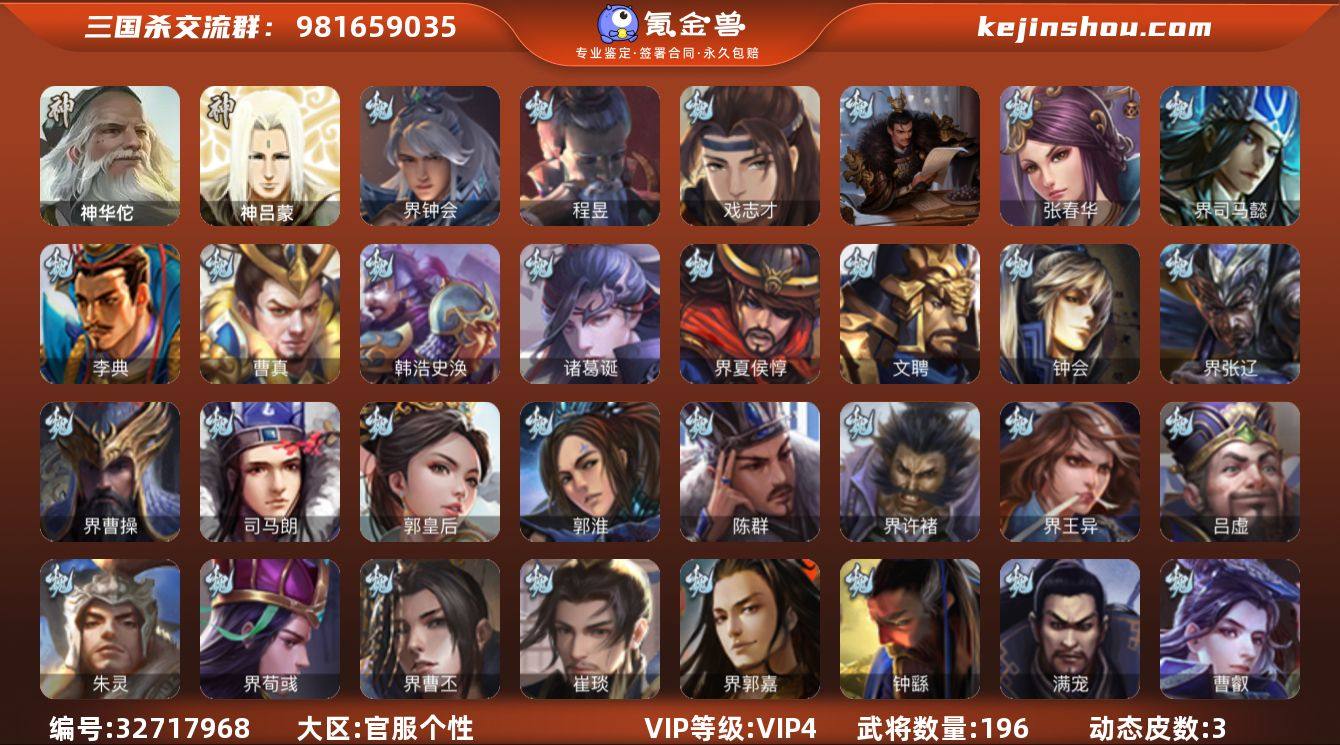神华佗,界钟会,戏志才,程昱,谯周,花鬘,麹义,公孙康,神吕蒙,SP关羽,曹昂,诸葛诞,朱灵,文聘,SP姜维,张春华,钟会,曹冲,郭淮,满宠,界王异,界曹操,界司马懿,界夏侯惇,界张辽,界许褚,界郭嘉,李典,曹真,韩浩史涣,陈群,曹叡,钟繇,司马朗,郭皇后,吕虔,界荀彧,界曹丕,界曹植,卞夫人,崔琰,势陈到,SP孙尚香,关银屏,夏侯霸,马良,关兴张苞,廖化,界马岱,关平,刘封,界法正,界关兴张苞,界刘备,界张飞,界赵云,SP徐庶,吴懿,周仓,张松,刘谌,夏侯氏,李严,界黄月英,界伊籍,吕凯,傅肜,界简雍,诸葛果,甘夫人,凌操,诸葛恪,诸葛瑾,孙鲁育,程普,韩当,潘璋马忠,虞翻,朱然,界甘宁,界吕蒙,界黄盖,界周瑜,界大乔,界陆逊,孙鲁班,朱桓,顾雍,朱治,阚泽,潘濬,吕岱,许贡,界凌统,界韩当,孙翊,谋韩当,谋吕蒙,界孙休,界朱治,张布,孟达,友庞统,伏完,界袁术,SP赵云,张宝,伏皇后,李儒,华雄,袁术,界华佗,公孙瓒,蔡夫人,公孙渊,张鲁,刘虞,界貂蝉,SP太史慈,界高顺,界公孙瓒,韩遂,谋刘赪,王濬,谋华雄,势田丰,钟会-谋谟之勋(动态...