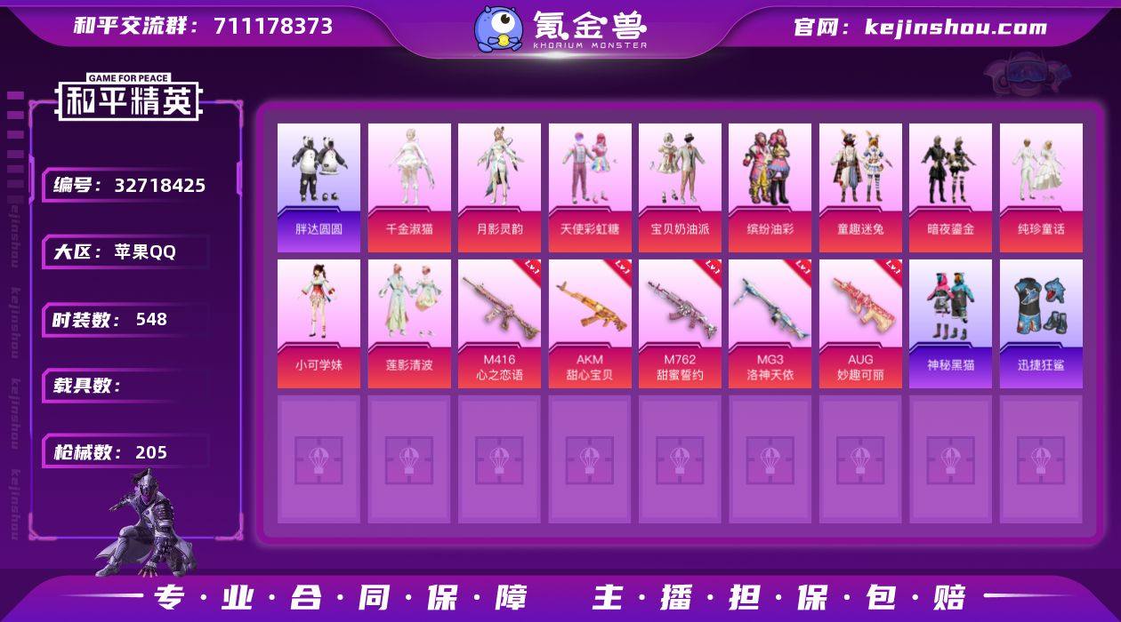 【稀有枪皮】JS9-奇迹舞步,PKM-萌骑夺宝,M249-绝对恒星,DP-28-豹影疾电,MG-36-沧焰双生,Kar98K-巳巳如意,AKM-暮色玫影,14-福马献瑞,M249-霁蓝缠春,M416心之恋语,AKM甜心宝贝,M762甜蜜誓约,MG3洛神天依,AUG妙趣可丽