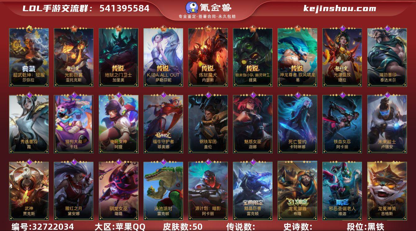 【LSC564】46英雄/50皮肤/华贵铂金/超武乾坤:征服/邪恶圣诞老人/光影巨翼亚托克斯/K/DA ALLOUT萨勒芬妮/欧米伽小队 幽灵特工/炼狱魔犬/神龙尊者 驭风啸龙/地狱之门卫士/钢铁军团/腥红之月皎月/端劲墨印 泰达米尔/铁血女忍/源计划:暗影/福牛守护者剑姬/电玩女神阿狸/武神/未来战士卢锡安/驯龙女巫/秀逸墨羽 霞/光源盛放婕拉/猫狗大战 千珏/魅惑女巫风女/死亡誓约卡特/泳池派对鳄鱼/黯晶巨兽/s9王牌舰长/s12龙冕先锋/s13龙冕御盾/s14龙冕神策/s16冠翎飞行员/S19冠翎征服者/死亡骑士/游侠法师/苍穹之光薇恩/龙冕先锋赵信/死亡绽放/龙冕御盾布隆/探戈灵魂崔斯特/王牌舰长/冠翎征服者 尼菈/探戈灵魂寡妇/银色之牙/超武乾坤:暗影/冲击之刃劫/兔宝宝提莫/女警官/冠翎飞行员 库奇/制胜金球/创世魔神/无畏号/黑曜石守护者/科学狂人/龙冕神策吉格斯/碎桶者/穿着正装的恶魔/腥红之月锤石