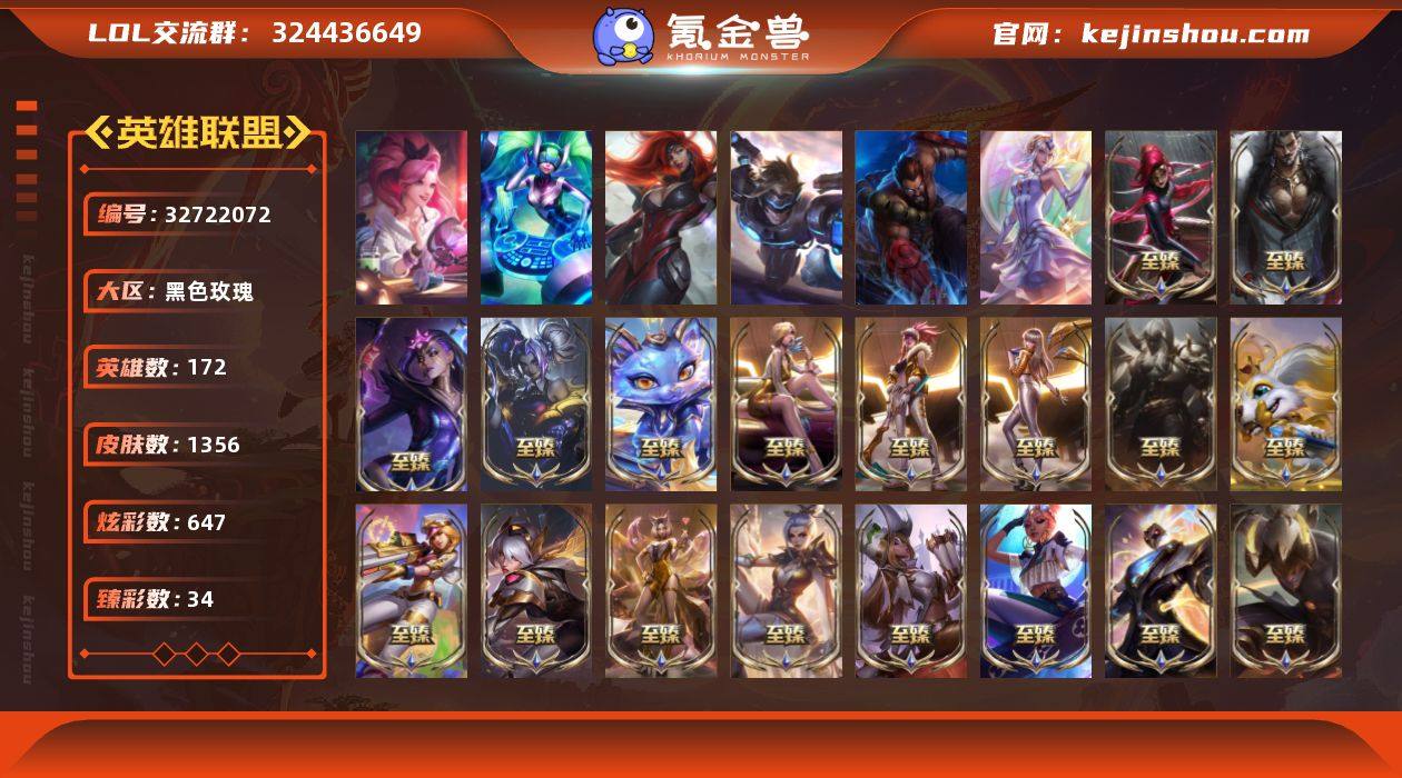【941845】铂金段位-172英雄-1356皮肤-647炫彩-8终极-82神话-260限定-124传说-215史诗 【热门头像】:爱意绵绵头像,爱情之歌头像,觅心之翼奎因头像,觅心游侠卢锡安头像,银河魔装机神安妮头像,春晖神女头像 【神话皮肤】:十周年纪念安妮,新卧虎藏龙贾克斯,神凰行者瑞羽圣凰艾尼维亚,殿堂传奇薇恩,灰烬征服者潘森,灰烬骑士莫德凯撒,星之守护者塔莉垭 【至臻皮肤】:至臻魔女乐芙兰,至臻灵魂莲华易,至臻剪纸仙灵希维尔,至臻北极星使者沃里克,至臻魅惑女巫厄运小姐,至臻魅惑女巫厄运小姐(2022),至臻征服者贾克斯,至臻KDA伊芙琳,至臻源计划正义艾瑞莉娅,至臻海珀利安小队X09星环灵风迦娜,至臻狼神英灵斯维因,至臻电玩女神凯特琳,至臻花仙使者卡特琳娜,至臻黑色玫瑰假面舞会卡特琳娜,至臻焰执事布兰德,至臻黑夜使者李青,至臻烈焰美人薇恩,至臻飞升战神潘森,至臻灵能特工伊泽瑞尔,至臻天龙之子伊泽瑞尔,至臻KDA阿卡丽,至臻魔女阿卡丽,至臻战斗学院蕾欧娜,至臻西部魔影猎天使恶魔泰隆,至臻玉剑传说武剑仙锐雯,至臻玉剑传说武剑仙(2022),至臻青花瓷拉克丝,至臻KDA阿狸,至臻绒毛菲兹,至臻神龙尊者均衡之龙沃利贝尔,至臻福牛守护者菲奥娜,至...