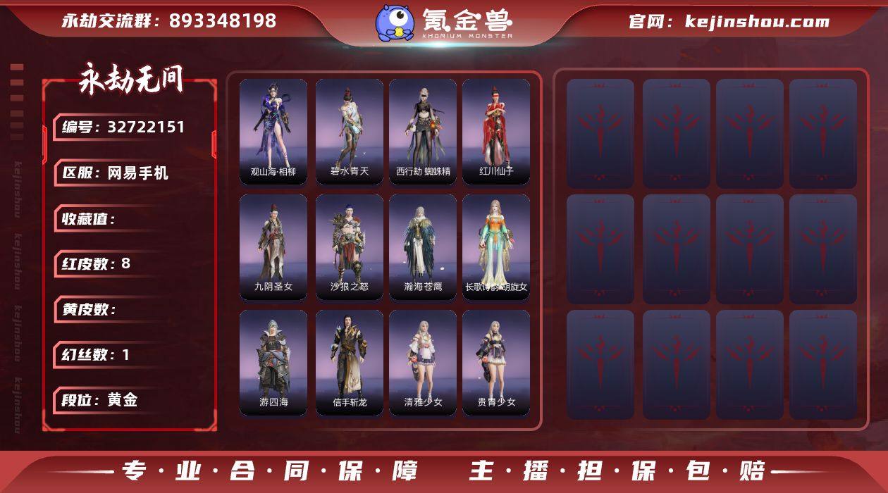 WYJ535【可秒绑 8红 32金 1龙之道】【游戏等级】269【大区】国服【排位】黄金Ⅴ【神品皮肤】 流金晓锦 帝星 赤皓新囍 墨离 泣珠龙纱 狼主 化生明王 熛怒炼火【极品皮肤】 倾国倾城·闭月 暖冬茶馨 开辟鸿蒙·风雨谐 开辟鸿蒙·金戈止 封神录·姜子牙 封神录·哪吒 观山海·相柳 街头狂欢·不败擂主 自动人形·A2 长歌诗韵·胡旋女 九骊之君 沙狼之怒 碧水青天 九阴圣女 贵胄少女 红川仙子 击浪 游四海 瀚海苍鹰 清雅少女 百战·破荆者 不良人·李星云 煦阳漫叙 百战·执金 织锦衫·缤纷 铸神·风卫天翎 西行劫·悟净 武道无穷·咏春 西行劫·蜘蛛精 羽影 信手斩龙 神机袍·缤纷 【龙之道】龙之影·过江龙