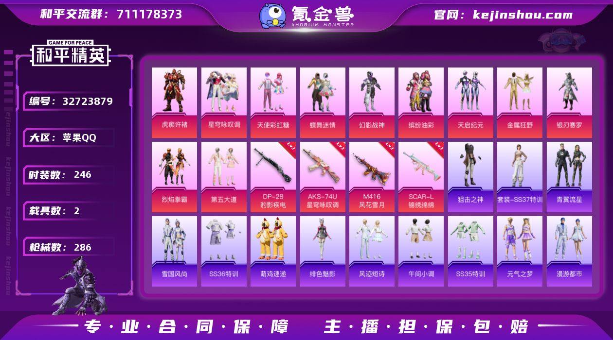 【11粉装4特效枪2载具 秒换绑不用等】 苹果Q区-99108热力值-246套装-286枪皮 【2载具】 特斯拉R尊享铂 特斯拉3银色【1稀有】 奇异狩猎者【11粉装】 天使彩虹糖 缤纷油彩(猪脸妹) 蝶舞迷情 金属狂野 虎痴许褚 银刃赛罗 烈焰拳霸 第五大道 天启纪元 幻影战神 星穹咏叹调【4特效枪】 M416-风花雪月(7级) SCAR-L-锦绣绵绵(5级) AKS-74U-星穹咏叹调(7级) DP-28-豹影疾电(5级)【223热门】 雪山精英(老6服) 潮萌小黄鸭 激萌罗小黑 小丑鱼 迅捷狂鲨 大橘为重 金羽特工 极速红龙 团圆交子 瑞龙福将 Kar98K-终极赛罗 缤纷焰火 白色伏地魔 SS9特训 SS8特训 SS6特训 SS4特训 SS27特训 SS26特训 SS24特训 SS23特训 SS22特训 SS10特训 S12K-华贵君王 M762-乌木金纹 Kar98K-王子的夏天 M416-乌木金纹 GROZA-乌木金纹 SCAR-L-玉兔迎春 GROZA-田园牧歌 M762-天降萌叽 Mk47-乌木金纹 UZI-娇憨猪猪 M416-夜灯 S12K-垂柳戏鸭 MG3-幻世战舞者 AKM-虎虎生威 AKM-霓虹街区 AKM-春暖花开 M16A4-快乐主宰 梦魇先生 万圣娃娃 M416-蓝色火焰 GROZA-异彩先驱 GROZA-春暖花开 GROZA-彩虹符号 AUG-怪笑疯兔 奇迹天团 影双刃 众神之王 破蛋小黄鸡 长空猛禽 异彩先驱 虚音幻奏 甜心亚梦 特训学院 青涩时光 青...