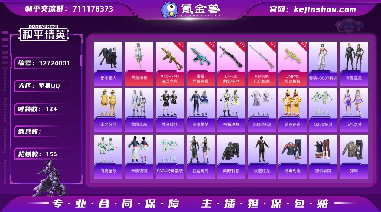 【都市男神5特效枪1粉装 秒换绑不用等】 苹果Q区-44284热力值-124套装-156枪皮 【1稀有】 都市猎人【1粉装】 霁蓝缠春【5特效枪】 AKS-74U-森灵之息(5级) UMP45-恐龙拽拽(7级) 蜜獾-异瞳寒姬(5级) Kar98K-巳巳如意(5级) DP-28-豹影疾电(5级)【137热门】 浪漫天命 都市猎人(蓝口罩) 极速红龙 团圆交子 瑞龙福将 白色伏地魔 SS26特训 SS24特训 SS23特训 SS22特训 Mk14-暗星紫秘 Kar98K-王子的夏天 SCAR-L-玉兔迎春 GROZA-田园牧歌 M762-天降萌叽 Mk47-乌木金纹 UZI-娇憨猪猪 MG3-幻世战舞者 AKM-虎虎生威 鹰眼刺客 M416-蓝色火焰 GROZA-异彩先驱 QBZ-银碳小老虎 破蛋小黄鸡 长空猛禽 异彩先驱 特训学院 青涩时光 青年教官 骑行爱好者 牛气冲天 霓虹街区 霓虹极客 妙红点点 魅力单车 猎鹰 蓝色运动 橘黑制服 黄色运动 漫步者 黄色伏地魔 红色运动 黑色伏地魔 和煦暖阳 海岛探路者 春日漫步 M762-瑞龙福将 平底锅-画境星梦 海琴烟 P90-紫矿核心 GROZA-紫矿核心 M249-无面战甲 MG-36-薄荷星砂 SS34特训 S686-拉面少女 撬棍-冰晶雪宝 AWM-天降萌叽 SS18特训 SS17特训 SS19特训 SS20特训 SS21特训 破片手榴弹-爆破雪人 SS30特训 ACE32-冰晶雪宝 青翼流星 海盐绵绵冰 SS31特训 SS33特...
