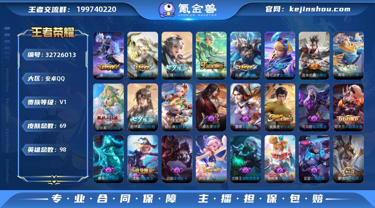 【XY987】贵族0/皮肤69/传说7/史诗23/英雄98/孙权全皮/鸣野蒿/澜逐花归海/惊梅引/鹤归松栖(云缨)/妄想实况/怒海麟威/炽阳神光/阴阳师/皇家上将/海滩派对/李小龙/玲珑珍味/探海日志(s32)/驭风魔法/鹤归松栖(赵怀真)/江河有灵/古海寻踪(s33)/蒙恬荣光圣徽/鬼谷子天穹祈灯(S34)/妄想食味/荣光之誓/线条小狗-周瑜/涂山容容/暗渊魔法/修罗/星夜王子/功夫厨神/冰冠公主/心灵战警/暗隐猎兽者/水晶猎龙者/幽灵船长/绅士熊喵/金属风暴/魅力维加斯/水果甜心/地狱岩魂/紫霞仙子/极光幻客/鹤鸣心笺/径山谋武/魅影绮裳/铁骨偃魂/暗都幽影/完美运算/破局者/妄想特派/乓乓大师/特工战影/野性能量/丁香结/敏锐之力/幻想奇妙夜/汉昭烈帝/死亡骑士/忍·炎影/街头霸王/赤焰之缨/幸存者/灼热之刃/魇语军师/海之征途/龙域领主/星航指挥官/埃及法老/战争骑士/蔷薇王座/范海辛/西部大镖客-孙悟空