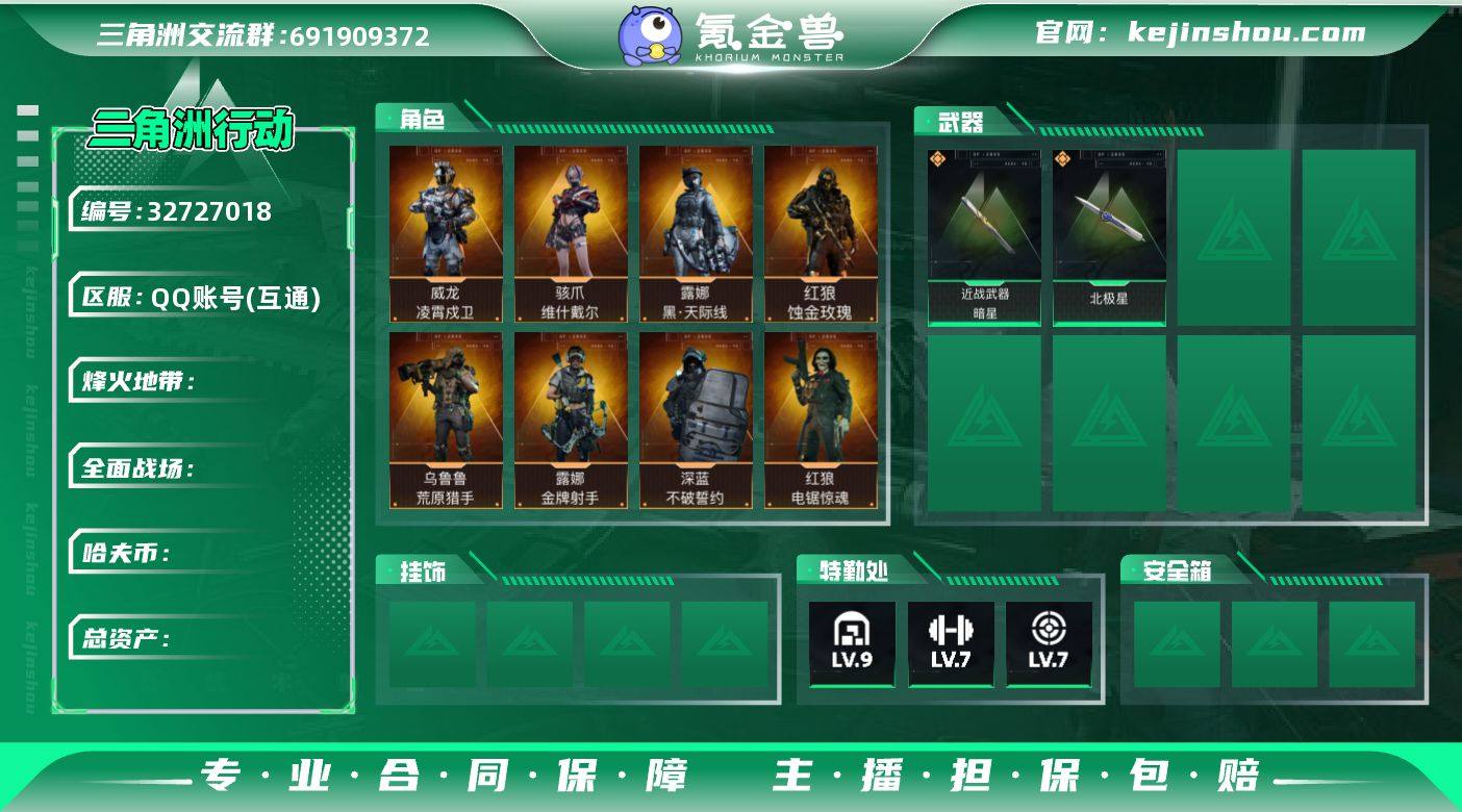问鼎编号7350 【4红皮2刀皮房卡多多欧皇号】 总资产【275.5M】特勤处【9-6-7-7-2-1】干员【玫瑰红狼】【凌霄戍卫】【黑天际线】【维什戴尔】【电锯惊魂】【壮志凌云】【金牌射手】【夜鹰】【无题密令】【荒原猎手】【不破誓约】【北极星】【暗星】【通行证已买】