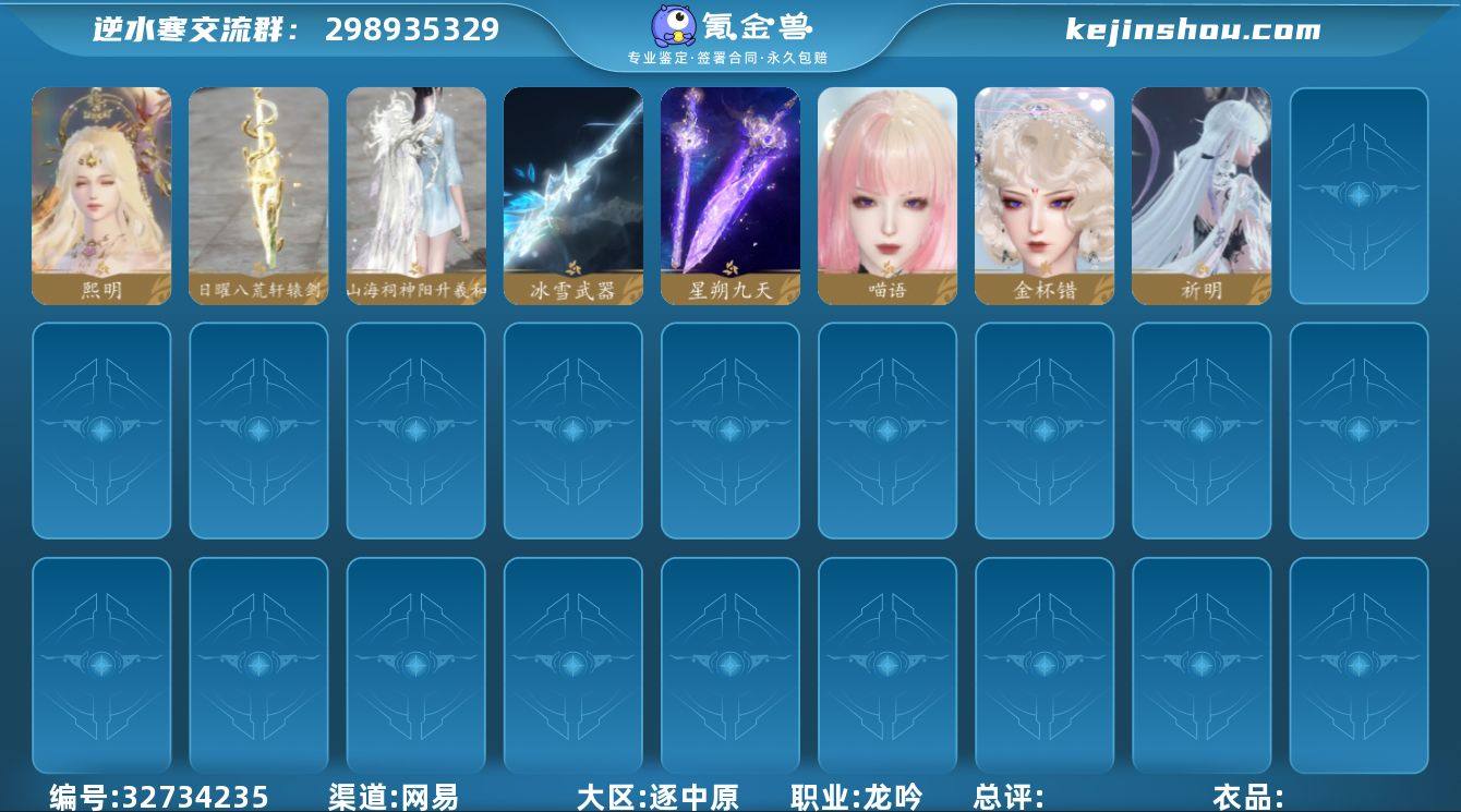 【区服】 挑灯看剑 【战力值】 54.41 【职业】 龙吟 【馆藏】 6级 【衣品值】 226070 【国色值】 112370 【已用天赏石】 20 【背包未用天赏石】 2 【天霓染数量】 6 【充值称号】 把酒临风 【累计充值】 21526元 【剩余赠礼额度】 33836纹玉 【天霓染】 娇俏毒物*1, 灵娲泽生*1, 绒粉美梦*1, 狸奴颂锦*1, 野月*1, 双蕊*1 【灵韵内功】 点明炉, 沉渊, 楚狂歌, 惊山月, 撼金阙 【稀有道具】 未用天赏石 【副本外观】 白夜拂雪*1, 飞焰流波, 紫宿宸极, 星落月皓 【天赏外观】 喵语, 金杯错, 祈明, 熙明, 冰雪武器, 星辰武器, 日曜八荒·轩辕剑, 山海祠神·阳升羲和 【祥瑞坐骑】 萌莓, 骋风叱焰, 布丁, 抟乌镇妖, 假面, 风行·江湖景, 风行·世间情, 风行·万灯明, 呆宝, 云螭·再浪一夏, 云螭·烹鲜炊黍, 云螭·探宇寻寰, 龙衔瑞焰, 丹锦喜狮, 风行·谦谦有礼, 花仙鼠鼠, 甜点鼠鼠, 金冠鼠鼠, 粉黛娇, 幻琉晶, 狂霸天, 星河转·银昼, 星河转·金夕, 星河转·赤夜, 贺岁喜狮, 伯力, 咩郎, 墨流云·玄色, 墨流云·朱红, 墨流云·靛青, 奔虹赤, 踏星夜, 彩虹小马, 木小马, 梅香团子, 聆音及昼, 绒绒夜, 帝皇驹, 牛奶酥, 鱼逢岁禧, 隐云涧, 鱼曳金霞, 西部驴仔, 银砂素波, 侠道游, 逍遥游, 犬威哮月...