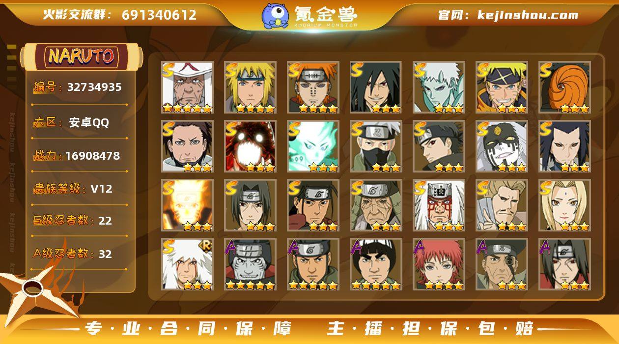 主要战力号,想体验一直追榜的可以试试,刃具是斑5件套,号潜力高,基础是战区第一梯队的,【v12差1千2到v13】 【忍法帖超哥70片】【秽土长门82片】 198通灵有2只,一只打伤害,一只隐身 本期忍法帖已出,点卷还有700多,金币有9k接近,月卡有1w3的金币 赤魂耳环还有19个,不用担心没符刷,饰品强化到30就可以到下一个阶段,198通灵打伤害的19阶再玩两个月可以到20阶,伤害很高 【5星s已出,这个号在玩一年可以进本服5,战区15】