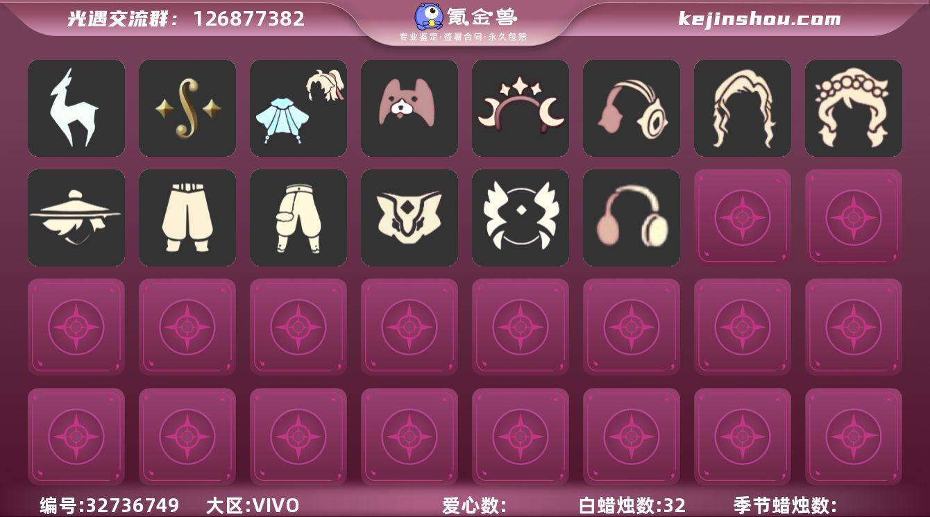 蜡烛数:32/爱心数:73/墓土/九色鹿季/二重奏季/九色鹿丸子头/九色鹿丝带裤/合奏挂画/蓝色燕尾服/白色高脚钢琴/青鸟毕业面饰/神鹿祝福礼包/小狗周年发饰/星月头饰/彩虹耳机/青衫落拓礼包/武士裤/搓澡巾/虚荣/花环/红耳机/若笠/白金斗篷/黑金斗篷/红金斗篷/黄鼠狼/星月头冠/猫猫头/花环长发/玉兔发饰/小王子围巾/瑞气纸伞