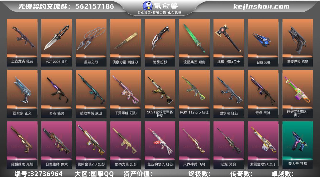 【21冠军AK全T0皮肤极品号】S194254 无畏契约/174等级/铂金段位/29英雄/79皮肤/资产38650/已使用R点1165/剩余R点125/VCT-2026-篆刀,日耀风暴-遗器,诡秘蛇影-军刀,流星兵团-短剑,钢轨卫士-战锤,黑波之刃,侦察力量-蝴蝶刀,RGX-11z-Pro-狂徒,千灵华绽-幻影,破败军械-戍卫,塑水宗-狂徒,2021全球冠军赛-狂徒,上古龙炎-狂徒,紫阙金琅//2.0-幻影,盖亚的复仇-狂徒,侦察力量-幻影,日冕雄师-獠犬,砰砰X特攻队-奥丁,奇点-战神,紫阙金琅//2.0-奥丁,奇点-骇灵,黯夜怪谈-标配,塑水宗-正义,耀鳞威龙-鬼魅