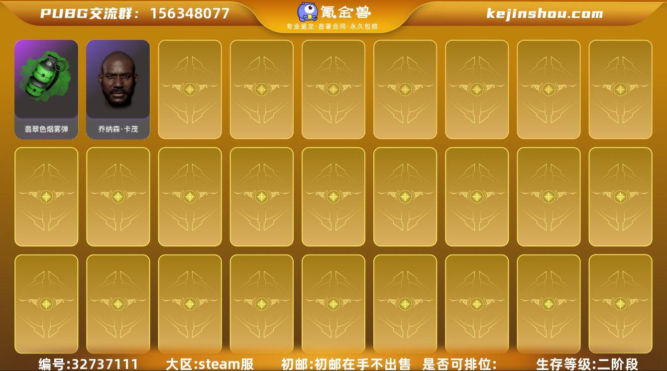 账号来源: 自营 初邮情况: 初邮在手不出售 热门装扮: 黑鬼,渔夫帽