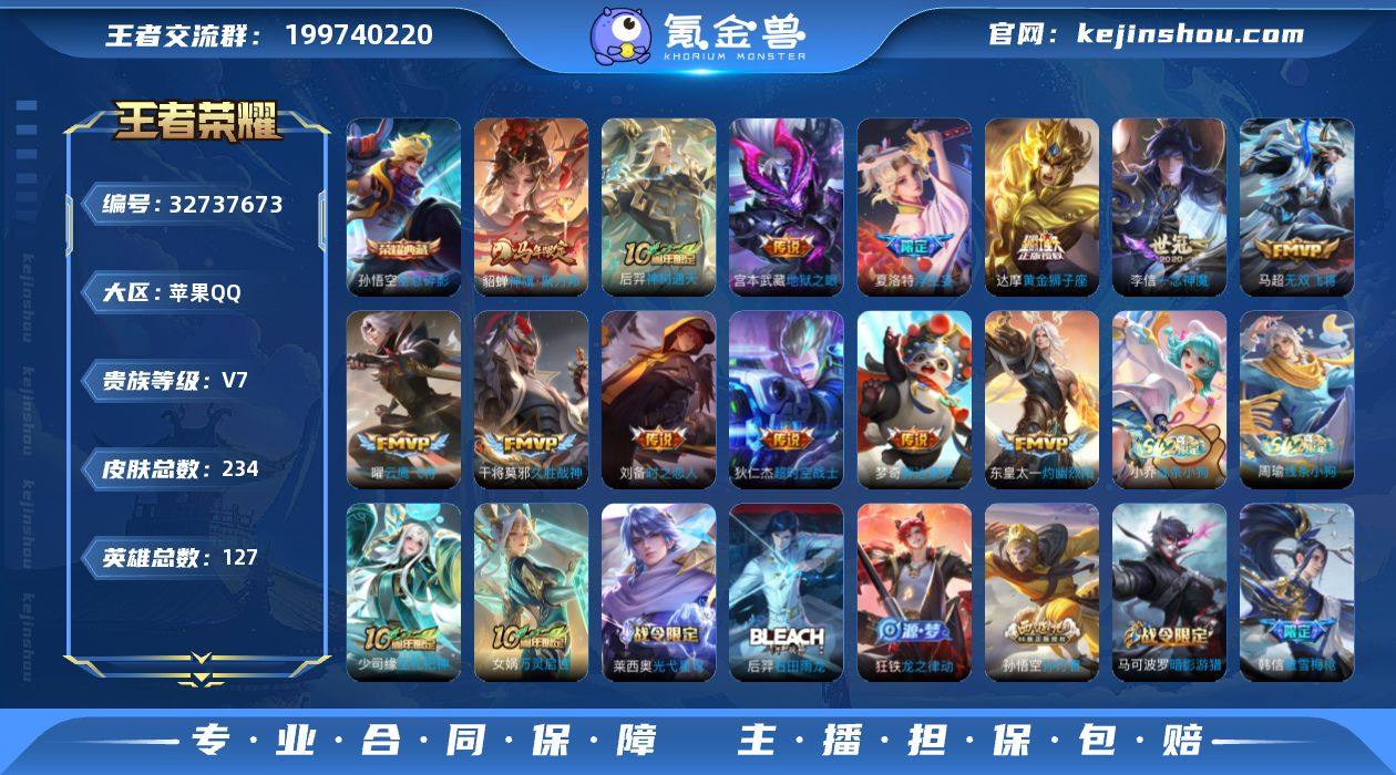 苹果Q-V7-最强王者段位-127英雄-234皮肤-1典藏皮肤-13传说-66史诗HZ2632514 【英雄全皮】:孙权全皮,敖隐全皮 【荣耀典藏】:孙悟空全息碎影 【传说皮肤】:貂蝉神骥聚万邦,后羿神树通天,东皇太一灼幽烈阳,夏洛特浮生妄,马超无双飞将,曜云鹰飞将,李信一念神魔,刘备时之恋人,干将莫邪久胜战神,达摩黄金狮子座,梦奇胖达荣荣,宫本武藏地狱之眼,狄仁杰超时空战士 【限定皮肤】:狄仁杰阴阳师,赵云皇家上将,妲己时之彼端,嬴政优雅恋人,庄周高山流水,高渐离玩趣恶龙,扁鹊奇幻香踪,芈月幻夜卜梦,元歌云间偶戏,元歌无心,夏侯惇朔风刀,马可波罗暗影游猎,狄仁杰魔术师,狄仁杰万华元夜,达摩星际陆战队,达摩沙漠行僧,项羽海滩派对,老夫子醍醐杖,程咬金演武夺筹,露娜一生所爱,韩信傲雪梅枪,兰陵王金庭之子,亚瑟潮玩骑士王,孙悟空孙行者,牛魔奔雷神使,后羿圣弓游侠,李元芳云中旅人,钟馗驱傩正仪,杨戬潮玩骑兵,干将莫邪胡桃夹子,干将莫邪真爱魔法,雅典娜单词大作战,太乙真人华丽摇滚,鬼谷子原初探秘者,黄忠火炮绅士,苏烈千军破阵,百里玄策原初追逐者,百里守约朱雀志,弈星混沌棋,沈梦溪大漠名商,沈梦溪匿光破解者,明世隐疑决卦,裴擒虎...