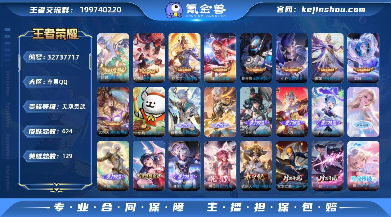 高质量女号,全皮瑶紫瑶,全皮蔡文姬,全皮朵莉亚,全皮王昭君,全皮武则天,全皮妲己,全皮西施,全皮嫦娥,全皮海月,公孙离少一皮可补,大乔安琪拉甄姬小乔少一皮72按键,双小兵皮肤:线条小狗,雪境奇遇,四天幕:雪境奇遇,财神纳福,花朝如约,鲲 129英雄624皮肤1珍品无双9典藏11无双缺李信孙悟空铠9珍品缺伽罗3星元时之愿境幻海之心未来机甲96传说218史诗254限定,马年套,蛇年套,龙年套, 【传说皮肤】:云缨神骥越千峰,关羽神骥镇沧海,朵莉亚神骥鸣幻洲,狄仁杰神骥赴朔漠,貂蝉神骥聚万邦,马超神骥逐星野,王昭君长夜焕生,后羿神树通天,元歌诡秘之主,大司命死亡执政官,司马懿九山相柳,公孙离云诺千山,西施续相思,杨玉环星之鸣奏,后羿千劫归真,司空震愿照山河定,女娲愿照千秋盛,妲己愿照众生和,澜愿照九州拓,蔡文姬愿照福禄聚,虞姬愿照岁时盈,云缨幻光神枪,裴擒虎祥瑞亨通,嬴政玄雷天君,王昭君映山客,桑启鸣野蒿,庄周牧神诗旅,夏侯惇霜北刀,铠冥王哈迪斯,朵莉亚心动手记,云中君群星魔术团,墨子黄金天蝎座,海月金乌负日,亚连落雪白狼,吕布曦玄引,貂蝉曦玄引,孙尚香乘龙问璇玑,孙策乘龙淬吴钩,赵云乘龙铭钟鼎,澜逐花归海,艾琳觅...