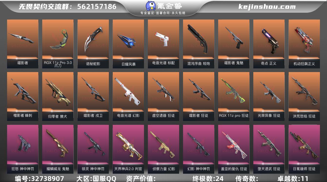 【942092】【5.8w库存显卡爪刀.紫金爪.簇刃.神之刃.八狂徒三幻影流脓.虚空.显卡.光荣异象.盖亚.侦查.光谱.弃王狙】YXy6274【无二次】【因赛季更新游戏段付以上号为准!】 【套装】:噬影者套装,神中神罚套装 【英雄】:幻棱,炼狱,维斯,暮蝶,壹决,铁臂,捷风,雷兹,幽影,不死鸟,贤者,猎枭,蝰蛇,零,芮娜,奇乐,尚勃勒,霓虹,斯凯,夜露,星礈,K/O,盖可,黑梦,钢锁 【近战武器】:近战武器-神之刃,近战武器-紫金爪刀,近战武器-RGX 11z Pro//3.0 爪刀,近战武器-噬影者 簇刃,近战武器-源始幻刃,近战武器-全息战斧,近战武器-影刃,近战武器-诡秘蛇影 军刀,近战武器-日耀风暴 遗器 【狂徒】:狂徒-洪荒怒焰,狂徒-虚空遗器,狂徒-噬影者,狂徒-RGX 11z Pro,狂徒-光荣异象,狂徒-堕天遗武,狂徒-盖亚的复仇,狂徒-日冕雄师,狂徒-诡秘蛇影 【幻影】:幻影-电音光谱,幻影-侦察力量,幻影-神中神罚,幻影-末日之翼,幻影-电音光谱 【戍卫】:戍卫-噬影者,戍卫-折光棱晶 【獠犬】:獠犬-归零者 【冥驹】:冥驹-堕天遗武 【飞将】:飞将-末日之翼 【莽侠】:莽侠-神中神罚,莽侠-诡秘蛇影 【奥丁】:奥丁-末日之翼 【判官】:判官-天界神兵//2.0,判官-诡秘蛇...