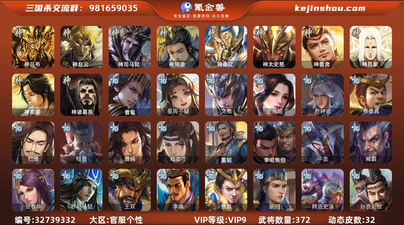 神吕布,神赵云,神司马懿,神陆逊,神张辽,神太史慈,神诸葛亮,神鲁肃,曹髦,星周不疑,王元姬,界钟会,界曹真,嵇康,曹纯,戏志才,程昱,谋赵云,诸葛瞻,谯周,花鬘,董允,张奋,吴景,孙寒华,留赞,界朱然,界徐盛,贺齐,文鸯,左慈,郑玄,张让,星黄忠,司马徽,麹义,南华老仙,沮授,界李儒,公孙康,杜预,卑弥呼,谋张角,许攸,星董卓,兀突骨,神吕蒙,神周瑜,SP关羽,SP曹仁,乐进,曹昂,诸葛诞,朱灵,文聘,SP姜维,张春华,钟会,曹冲,郭淮,满宠,界王异,界曹操,界司马懿,界夏侯惇,界张辽,界许褚,界郭嘉,李典,曹真,韩浩史涣,陈群,曹叡,钟繇,司马朗,李通,郭皇后,孙资刘放,辛宪英,界甄姬,吕虔,鲁芝,蒯越蒯良,界典韦,界荀彧,界徐晃,界曹丕,界邓艾,张恭,界曹植,界满宠,界郭淮,卞夫人,袁涣,王双,崔琰,毛玠,杨阜,阮慧,谋徐晃,谋于禁,牵招,胡班,李昭焦伯,司马伷,牛金,臧霸,董昭,SP孙尚香,关银屏,夏侯霸,马良,关兴张苞,廖化,界马岱,关平,简雍,刘封,界法正,界关兴张苞,界刘备,界关羽,界张飞,界赵云,界马超,SP徐庶,吴懿,周仓,张松,...
