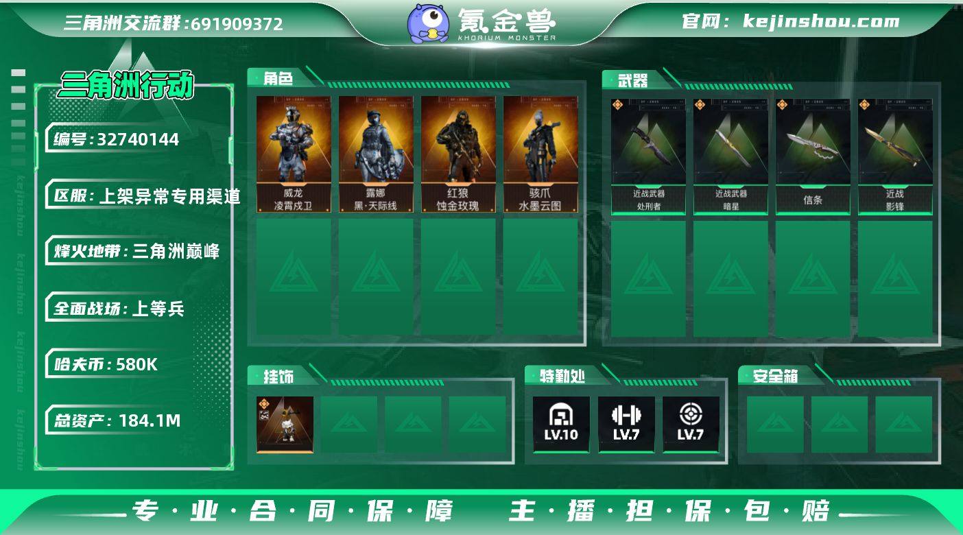 四红皮,三刀皮顶级账号,暴率很高,部门等级全满,基本每个干员都有皮肤,需要的抓紧入手,性价比最高,可小刀