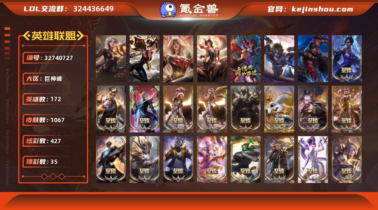 t38609【巨神峰】签名版联盟不朽卡莎 殿堂传奇卡莎 联盟不朽阿狸签名版 殿堂传奇阿狸 1069皮肤 427炫彩 35臻彩 45神话/174限定/99传说/172英雄 账号等级:717 云顶神话:10 【重要头像】爱情之歌 心型钥匙 觅心之翼奎因 雪花 我麦是开的么 救生圈 KDA萨勒芬妮 星守卡莎 EDG厄斐琉斯 EDG佛耶戈 EDG格雷福斯 EDG悠米 EDG佐伊 源计划艾瑞莉娅 灵魂莲华厄斐琉斯 灵魂莲华厄斐琉斯炫彩 太空律动莎弥拉 青花瓷伊泽瑞尔 披萨鸡 送披萨的小姐姐希维尔 西部天使艾瑞莉娅 战斗学院伊泽瑞尔神话炫彩 至臻神凰行者霞 至臻福牛守护者菲奥娜 至臻魔女婕拉 【重要皮肤】签名版联盟不朽卡莎 殿堂传奇卡莎 联盟不朽阿狸签名版 殿堂传奇阿狸 北极星神梅尔至臻 暗裔英雄嘉文四世至臻 T1杰斯至臻 至高天凯尔至臻 神龙尊者比翼之龙洛至臻 心之钢永恩至臻 绝息圣堂厄运小姐至臻 神凰行者烈羽焰凰霞至臻 女帝黛安娜至臻 太空律动璐璐至臻 魔女婕拉至臻 真实伤害亚索至臻 灵能特工伊泽瑞尔至臻 福牛守护者菲奥娜至臻 源计划逆流塞拉斯至臻 源计划阴劫至臻 黑夜使者凯隐至臻 神龙尊者均衡之龙沃利贝尔至臻 征服者贾克斯至臻 KDA二代卡莎至臻 KDA一...