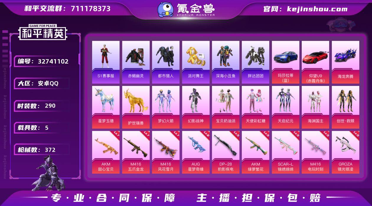 【精氪身法素材号!S1赛事全套 赤蝎 都市 金鞋 巡查衣 碟中谍A款上衣 哥特 6级星梦奇缘AUG】YXc28469-【可二次】【因赛季更新游戏段付以上号为准!】 安卓Q-10稀有5载具7粉装19特效枪37热门290套装372枪皮 24印记 历史绝世王牌23星 【10稀有】 S1赛事 S1赛事裤 S1赛事外套 巡查衣 赤蝎幽灵 AWM-黄金龙骨 都市猎人 浪漫天命 派对舞王 派对舞王(金靴子) 【5载具】 仰望U9(赤霞丹朱) 玛莎拉蒂蓝色 海龙奔腾 护世瑞兽 星梦玉骢 【7粉装】 梦幻火箭 天启纪元 宝贝奶油派 天使彩虹糖 创世救赎 幻影战神 海渊国主 【19特效枪】 M416-五爪金龙 (7级) SCAR-L-金蛇镇世 (3级) SCAR-L-锦绣绵绵 (5级) M416-墨龙九天 (3级) M416-电玩时刻 (5级) AKM-甜心宝贝 (7级) AKS-74U-森灵之息 (5级) AKM-绿萝繁花 (5级) UMP45-宇宙意志 (3级) Kar98K-巳巳如意 (5级) DP-28-豹影疾电 (5级) AUG-星梦奇缘 (6级) UMP45-量子极限 (5级) GROZA-镜光银凌 (5级) AKM-梦之光华 (4级) M416-风花雪月 (7级) Mk14-福马献瑞 (1级) AA12-G-萌骑幻想 (4级) 破片手榴弹-粉粉猫爪 (4级) 【37热门】 碟中谍A款上衣 8号机 Mark.06 小丑鱼 奇迹天团 龟仙人 星光纪元 雪山精英 鹰眼刺客 软萌银虎 奇迹天团 迅捷狂...