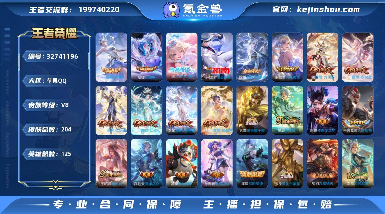 【王者荣耀】珍品无双0 典藏2 无双1 珍品传说3 传说17 史诗52 英雄125 皮肤204 贵族8级 荣耀典藏:幻阙歌|最初的交响__无双皮肤:雪境奇遇__珍品传说:怪盗基德|器灵·落星盏|大耳狗之梦__传说皮肤:鸣野蒿|音你闪耀|启明星使|胖达荣荣|海洋之心|仲夏夜之梦|久胜战神|黄金狮子座|黄金白羊座|映山客|愿照·岁时盈|愿照·山河定|愿照·九州拓|愿照·众生和|愿照·福禄聚|愿照·千秋盛|长夜焕生__稀有限定:一生所爱|蔷薇恋人|冰霜神祇|繁星吟游|古海寻踪|海滩派对|海盐诗旅|皇家上将|剑破天穹|江河有灵|魔术师|擒涛扼浪|热情桑巴|探海日志|天穹祈灯|无心|星界游侠|阴阳师|原初追逐者|逐梦之音|缤纷独角兽|冰冠公主|冰雪圆舞曲|乘风破浪|大乔-猫狗日记|地狱岩魂|鬼剑武藏|唤灵魅影|黄金分割率|节奏热浪|龙骑士|吕布-末日机甲|魅力维加斯|魅语|女仆咖啡|偶像歌手|圣诞恋歌|诗语江南|水果甜心|水晶猎龙者|孙策-猫狗日记|天才门将|摇滚巨星|银翎春语|鹰眼统帅|幽灵船长|紫霞仙子|百里守约-百相守梦|老夫子-百相守梦|噬灭天穹|舞动绿茵|特工魅影|心灵骇客|谧流熔炉|器灵·浮梦炉|化蝶舞|云中旅人|暖冬·兔眠|龙之律动|布丁狗之约|虚灵犬护|逆浪荇歌|织梦人|涂山容容|荣光之誓|万灵启世|鹤鸣心笺|九...