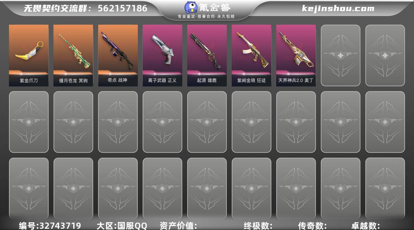 [18001483]12橙皮 10紫皮 83皮肤 28英雄 122卡面 925已用源晶 未定级段位 【近战武器皮肤】神圣领域 战刀,诡秘蛇影,荒土机兵热能刀,日耀风暴 遗器,苍龙之刃,阿特拉斯指挥部,紫金爪刀 【佩枪皮肤】正义-西部未来,正义-奇点,正义-离子武器,鬼魅-天界神兵,标配-堕天遗武 【霰弹枪皮肤】雄鹿-起源 【步枪皮肤】狂徒-紫阙金琅,狂徒-洪荒怒焰,幻影-侦察力量,幻影-般若假面,戍卫-天界神兵,獠犬-日冕雄师 【狙击枪皮肤】冥驹-偃月苍龙 【机枪皮肤】战神-奇点,奥丁-天界神兵2.0 【挂饰】5周年//重制版挂饰,V26第一幕纪念币 挂饰,达摩娃娃挂饰,无人之境挂饰,飞刀挂饰,双城之战小蛋糕挂饰,双城之战魄罗挂饰,神中神挂饰