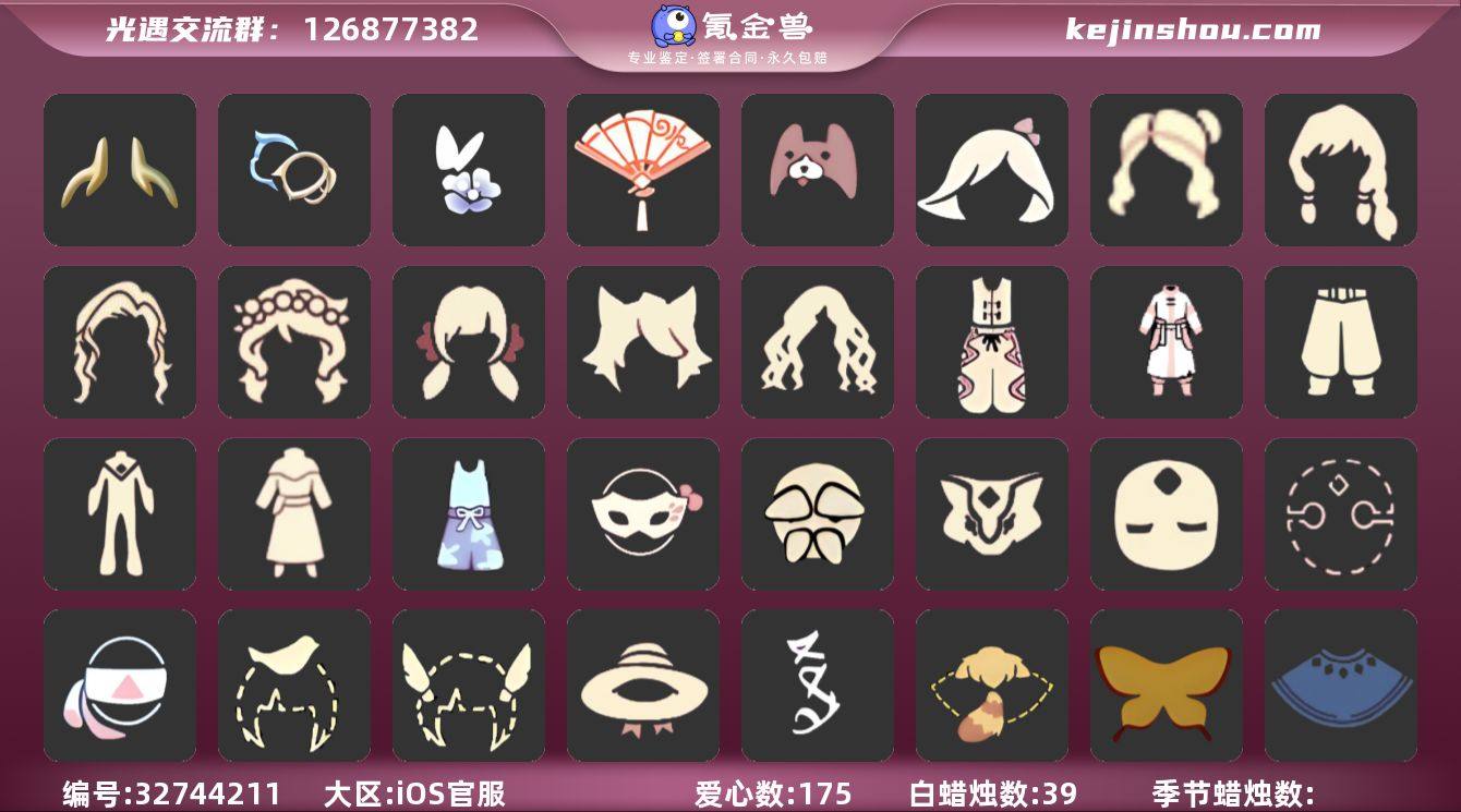 编号PY281 苹果手机 换绑CD4.26 详情请看衣柜截图 蜡烛数:39 爱心数:175 季节已毕业:双星季 织光季 完成地图:霞谷 礼包:蝴蝶与花发饰礼包 小狗周年发饰 献瑞折扇礼包 裤子:遥鲲沙滩短裤 蛇年裤子 连体裤 武士裤 猫猫裤 猎手长袍 鞋子:长筒凉鞋 面具:矮人面具 黄鼠狼 老头面具 玫瑰面具 黑脸 面饰:蒙眼面巾 发型:公主 书虫 虚荣 樱花 马蹄莲发型 猫耳 女巫 头饰:小鸟头饰 羽毛装饰 花环 太阳帽 红耳机 斗篷:菱形斗篷 红金 黑金 蝴蝶斗篷 小熊猫分体斗篷 马蹄莲斗 绿芽 彩虹斗 万圣斗 圣诞斗 配饰:尤克里里 当前身高 2.261168134257538 预计最高可达 1.5999998793266488 预计最矮可到 13.599999879326647