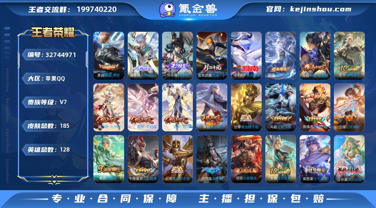 【王者荣耀】珍品无双0 典藏1 无双2 珍品传说3 传说14 史诗59 英雄128 皮肤185 贵族7级 荣耀典藏:鸣剑·曳影__无双皮肤:离恨烟|天机白泽__珍品传说:怪盗基德|器灵·落星盏|黑崎一护__传说皮肤:鸣野蒿|无双飞将|久胜战神|黄金狮子座|黄金射手座|孙尚香-末日机甲|凤求凰|幻光神枪|祥瑞亨通|愿照·岁时盈|愿照·山河定|愿照·九州拓|神树通天|神骥·逐星野__稀有限定:至尊宝|冰霜恋舞曲|地狱燃心|海滩派对|皇家上将|狂想玩偶喵|魔术师|天穹祈灯|妄想食味|阴阳师|驭风魔法|原初追逐者|暗隐猎兽者|乘风破浪|大乔-猫狗日记|德古拉伯爵|地狱岩魂|鬼剑武藏|节奏热浪|吕布-末日机甲|魅力维加斯|女仆咖啡|青蛇|圣诞恋歌|水果甜心|水晶猎龙者|孙策-猫狗日记|天秀·启明|赵云-未来纪元|星夜王子|摇滚巨星|鹰眼统帅|幽灵船长|逐浪之夏|紫霞仙子|百里守约-百相守梦|老夫子-百相守梦|谪仙醉月|星界特工|噬灭天穹|敬我三分|破空之剑|东方月初|埋骨钱|蔡文姬-夏日便利店|虞姬-夏日便利店|天穹之誓|心灵战警|千年之狐|无限星赏官|特工魅影|茶境仙|星界战将|谧流熔炉|狼魂孤将|化蝶舞|孙悟空-神迹守卫|访茗客|刘禅-鸭鸭历险记|沈梦溪-鸭鸭历险记|龙之律动|布丁狗之约|虚灵犬护|石田雨龙|逆浪荇歌|孙策-百...