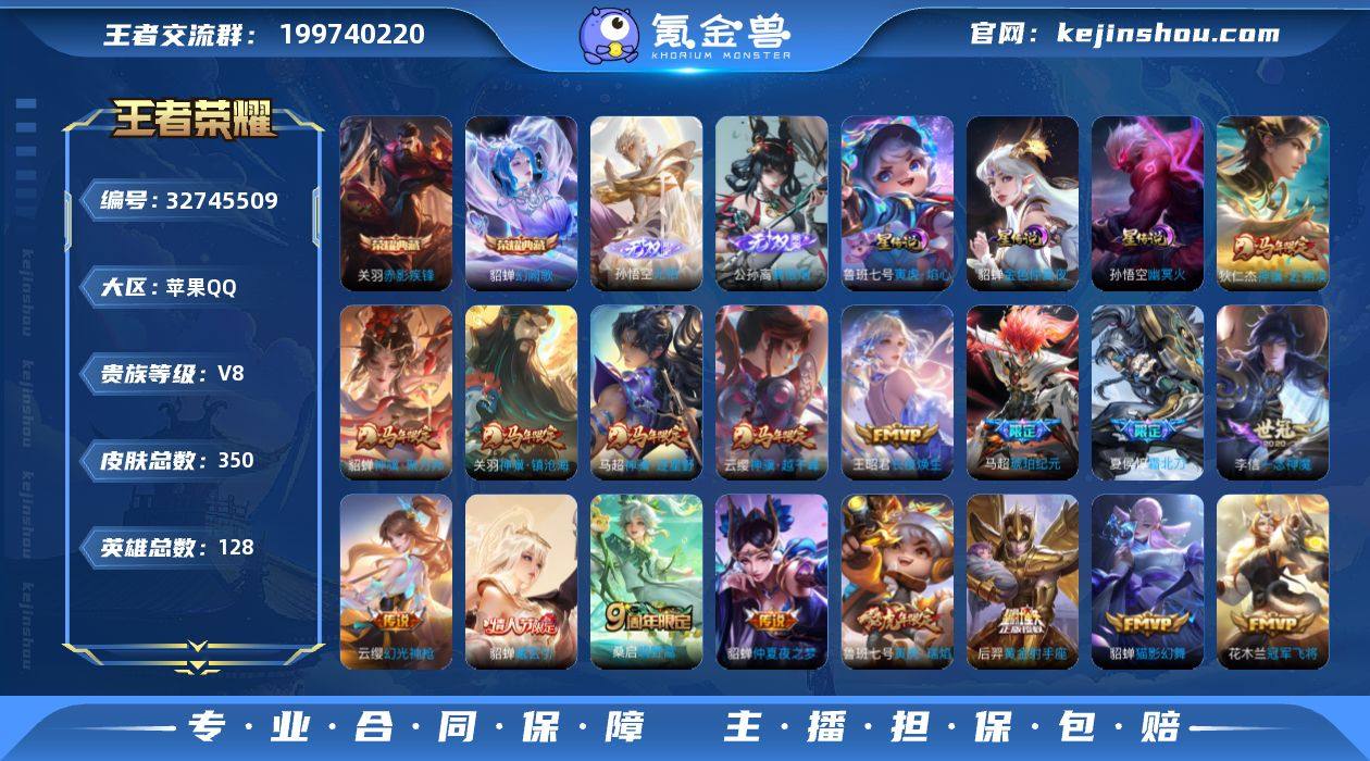 苹果Q-V8-最强王者段位-128英雄-350皮肤-2典藏皮肤-2无双-20传说-95史诗 【英雄全皮】:孙权全皮,苏烈全皮,敖隐全皮,蒙恬全皮,戈娅全皮,空空儿全皮 【荣耀典藏】:关羽赤影疾锋,貂蝉幻阙歌 【无双皮肤】:孙悟空无相,公孙离离恨烟 【传说皮肤】:云缨神骥越千峰,关羽神骥镇沧海,狄仁杰神骥赴朔漠,貂蝉神骥聚万邦,马超神骥逐星野,王昭君长夜焕生,云缨幻光神枪,桑启鸣野蒿,夏侯惇霜北刀,貂蝉曦玄引,马超琥珀纪元,东皇太一灼幽烈阳,鲁班七号寅虎瑞焰,虞姬启明星使,李信一念神魔,貂蝉猫影幻舞,花木兰冠军飞将,后羿黄金射手座,貂蝉仲夏夜之梦,孙悟空地狱火 【限定皮肤】:公孙离离恨烟,夏侯惇霜北刀,蒙犽顽岩魄,蔡文姬夏日便利店,虞姬夏日便利店,姜子牙天穹之誓,狄仁杰阴阳师,赵云皇家上将,墨子神迹守卫,嬴政优雅恋人,孙尚香蔷薇恋人,鲁班七号寅虎瑞焰,庄周高山流水,芈月白晶晶,芈月幻夜卜梦,元歌云间偶戏,元歌无心,马可波罗暗影游猎,马可波罗山海玄木吟,狄仁杰魔术师,达摩沙漠行僧,项羽海滩派对,老夫子航海奇遇记,貂蝉逐梦之音,露娜一生所爱,韩信傲雪梅枪,兰陵王金庭之子,孙悟空至尊宝,孙悟空大圣娶亲,后羿圣弓游侠,刘备...
