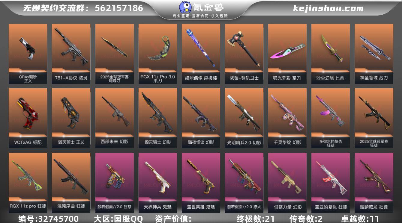 【4.7w库存恶鬼套.25冠军套.剥皮小刀.显卡爪刀.九狂徒六幻影混沌.显卡.多弥尔.狮子.盖亚.古神.莲花.侦查.毁灭骑士】YXy6104【无二次】【因赛季更新游戏段付以上号为准!】 【套装】:2025全球冠军赛套装,般若假面//2.0套装 【英雄】:幻棱,炼狱,维斯,暮蝶,钛狐,壹决,铁臂,捷风,雷兹,幽影,不死鸟,贤者,猎枭,蝰蛇,零,芮娜,奇乐,尚勃勒,霓虹,斯凯,夜露,星礈,K/O,海神,盖可,黑梦,钢锁 【近战武器】:近战武器-2025全球冠军赛 蝴蝶刀,近战武器-剥皮小刀,近战武器-RGX 11z Pro//3.0 爪刀,近战武器-鬼丸国纲,近战武器-超能偶像 应援棒,近战武器-钢轨卫士 战锤,近战武器-弧光异彩 军刀,近战武器-沙尘幻旅 匕首,近战武器-神圣领域 战刀 【狂徒】:狂徒-2025全球冠军赛,狂徒-混沌序曲,狂徒-RGX 11z Pro,狂徒-多弥尔的复仇,狂徒-般若假面//2.0,狂徒-掠影,狂徒-盖亚的复仇,狂徒-日冕雄师,狂徒-耀鳞威龙,狂徒-超能偶像,狂徒-钢轨卫士,狂徒-弧光异彩,狂徒-沙尘幻旅 【幻影】:幻影-黯夜怪谈,幻影-光明哨兵//2.0,幻影-毁灭骑士,幻影-千灵华绽,幻影-西部未来,幻影-侦察力量,幻影-合金战车,幻影-噬源兽防卫工程,幻影-神圣领域,幻影-聚...
