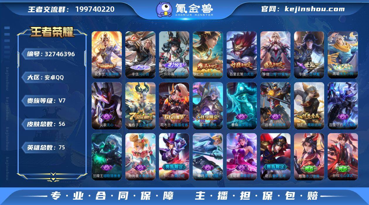 【极品2无双·全皮李信·问心剑·离恨烟·九霄神辉·白虎志·神骥赴朔漠·山海炽霜斩·无二次包过】YXw21763-安卓Q-75英雄-56皮肤-2王者印记-79铭文-贵族积分2w【贵族7】【1典藏·2无双·4传说·2按键】【因赛季更新游戏段付以上号为准!】 【英雄全皮】:孙权全皮,李信全皮,敖隐全皮 【荣耀典藏】:花木兰九霄神辉 【无双皮肤】:李信问心剑,公孙离离恨烟 【传说皮肤】:狄仁杰神骥赴朔漠,李信山海炽霜斩,李信一念神魔,百里玄策白虎志 【限定皮肤】:公孙离离恨烟,狄仁杰阴阳师,赵云皇家上将,元歌无心,狄仁杰魔术师,狄仁杰万华元夜,项羽海滩派对,程咬金演武夺筹,兰陵王金庭之子,李元芳云中旅人,钟馗驱傩正仪,鬼谷子五谷丰年,百里玄策白虎志,沈梦溪大漠名商,李信山海炽霜斩,嫦娥暖冬兔眠,桑启海盐诗旅,暃星界游侠,张良古海寻踪 【年限皮肤】:百里玄策白虎志,李信山海炽霜斩 【赛季限定】:狄仁杰万华元夜,程咬金演武夺筹,钟馗驱傩正仪,兰陵王金庭之子,沈梦溪大漠名商,李元芳云中旅人,桑启海盐诗旅,张良古海寻踪 【战令限定】:暃星界游侠,嫦娥暖冬兔眠,周瑜线条小狗 【史诗皮肤】:周瑜线条小狗,暃星界游侠,元歌无心,鬼谷子五谷丰年,哪吒雪上飞焰...