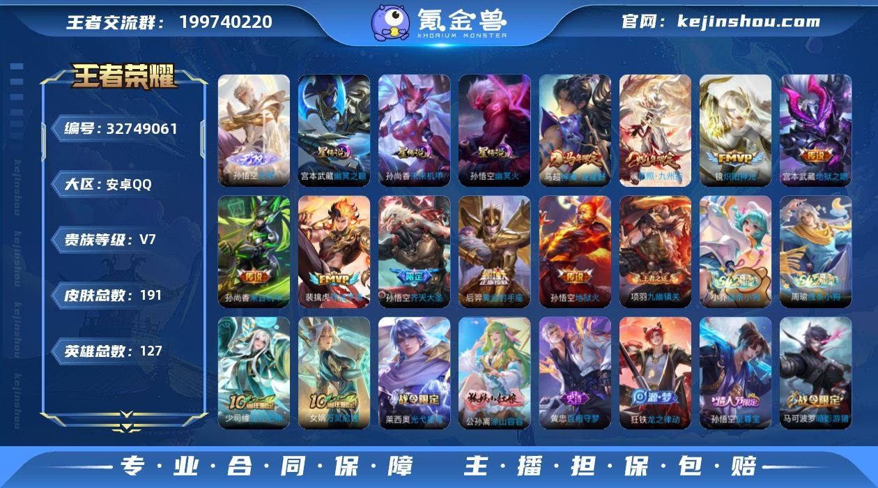 CHC11178,钱包未注销,安卓Q-V7-最强王者段位-127英雄-191皮肤-1无双-9传说-45史诗 【英雄全皮】:敖隐全皮,影全皮 【无双皮肤】:孙悟空无相 【传说皮肤】:马超神骥逐星野,澜愿照九州拓,裴擒虎祥瑞亨通,孙悟空齐天大圣,镜炽阳神光,后羿黄金射手座,孙尚香末日机甲,宫本武藏地狱之眼,孙悟空地狱火 【限定皮肤】:狄仁杰阴阳师,赵云皇家上将,马可波罗暗影游猎,狄仁杰魔术师,狄仁杰万华元夜,项羽海滩派对,老夫子醍醐杖,韩信飞衡,孙悟空至尊宝,孙悟空齐天大圣,钟馗驱傩正仪,鬼谷子原初探秘者,百里玄策原初追逐者,弈星混沌棋,明世隐疑决卦,裴擒虎李小龙,米莱狄御霄,猪八戒西部大镖客,上官婉儿梁祝,鲁班大师探海日志,张良古海寻踪,鬼谷子天穹祈灯,姬小满妄想食味,刘邦剑破天穹 【年限皮肤】:韩信飞衡,澜愿照九州拓 【赛季限定】:米莱狄御霄,弈星混沌棋,明世隐疑决卦,老夫子醍醐杖,鬼谷子原初探秘者,狄仁杰万华元夜,钟馗驱傩正仪,鲁班大师探海日志,张良古海寻踪,鬼谷子天穹祈灯,刘邦剑破天穹,东皇太一噬灭天穹,太乙真人谧流熔炉,钟馗虚灵犬护,甄姬逆浪荇歌,亚瑟荣光之誓,百里玄策原初追逐者,项羽九幽镇关 【战令限定】:马可...