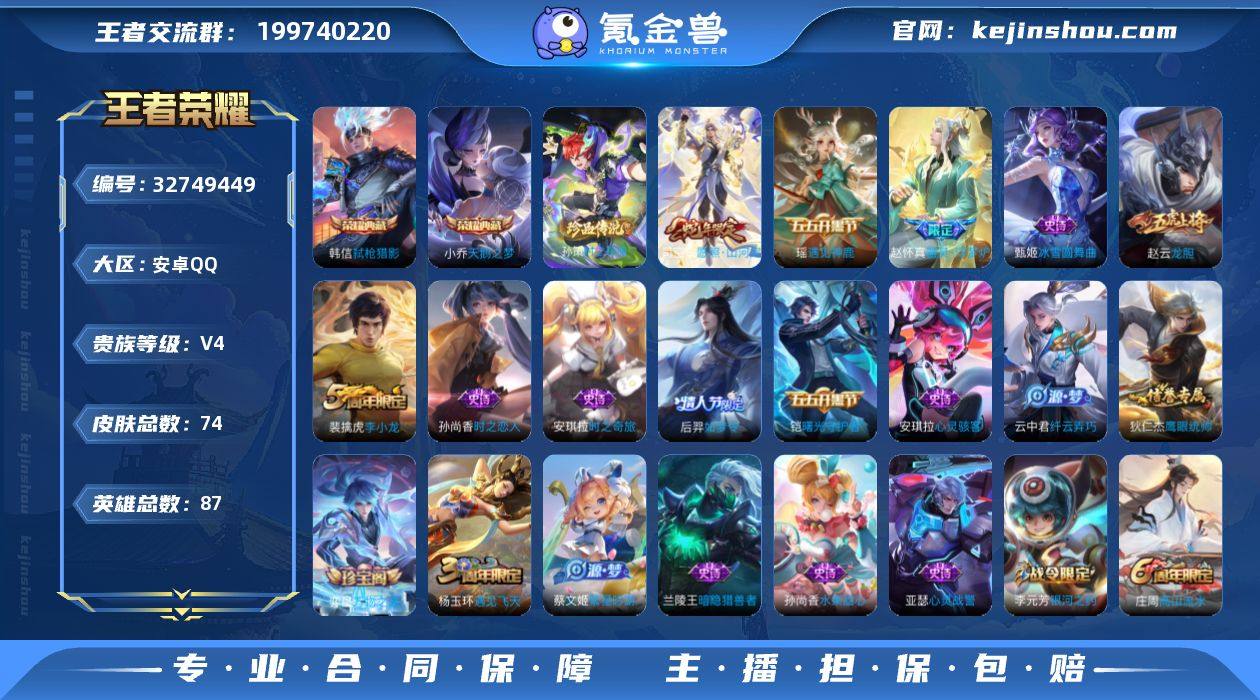 80132|【可实名】可二次 精品典藏珍品传说小帅干净号 安卓QQ 74皮 贵族4级 2典藏 1珍品传说 1传说 30史诗【荣耀典藏】天鹅之梦,弑枪猎影【珍品传说】时之奇旅【传说皮肤】愿照·山河定【史诗皮肤】纤云弄巧,心灵战警,暗隐猎兽者,如梦令,金属风暴,安卓QQ 74皮 贵族4级 2典藏 1珍品传说 1传说 30史诗【荣耀典藏】天鹅之梦,弑枪猎影【珍品传说】时之奇旅【传说皮肤】愿照·山河定【史诗皮肤】纤云弄巧,心灵战警,暗隐猎兽者,如梦令,金属风暴,水果甜心,时之恋人,心灵骇客,时之奇旅,鬼剑武藏,高山流水,万物之道,虎魄,乱世虎臣,银河之约,逐浪之夏,遇见飞天,魔术师,鹰眼统帅,偶像歌手,遇见神鹿,冰雪圆舞曲,舞动绿茵,繁星吟游,李小龙,皇家上将,龙胆,器灵·浮梦炉,曙光守护者,白龙吟【勇者皮肤】阿尔法小队,野性能量,谧流熔炉,紫罗兰之誓,归虚梦演,玩偶对对碰,万象初新,丁香结,无尽征程,混沌棋,灵野札记,救世之瞳,疑决卦,虹云星官,妄想特派,星空之诺,阴阳师,幻想奇妙夜,圆桌骑士,醍醐杖,忍·炎影,拳王,海滩派对,原初探秘者,探海日志【其他皮肤】赤焰之缨,隐刃,伊势巫女,西部大镖客,海之征途,埃及法老,精灵公主,森,绝影神枪,威尼斯狂欢,极冰防御线,街头旋风,归虚梦演,星航指挥官,熊喵少女