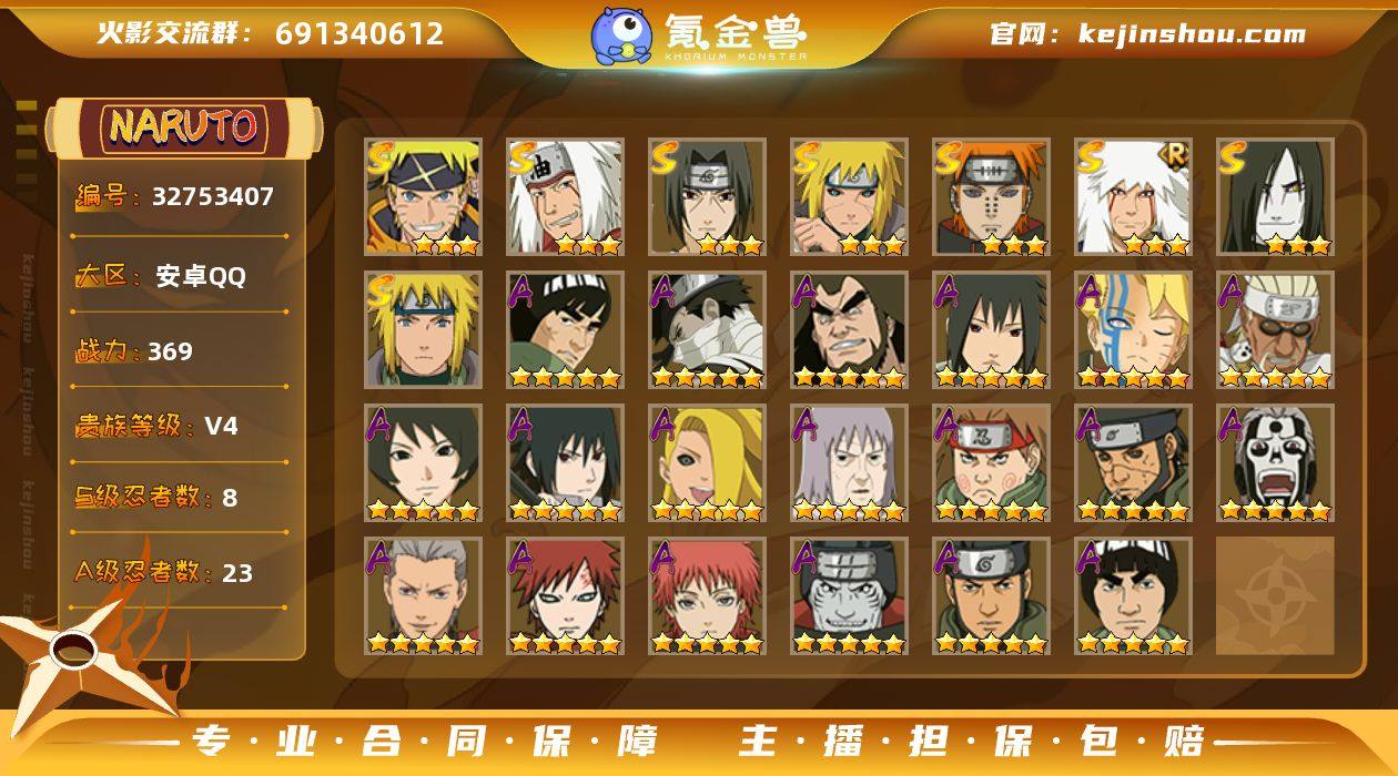 ZMHY643【可二次】【S忍者8 A忍者23 通灵14】【安卓Q-2426区-141级-V4-369万战力】【S级】波风水门 自来也「舞之豪杰」 佩恩「天道」 波风水门「秽土转生」 宇智波鼬「须佐能乎」 大蛇丸 自来也「传说中的三忍」 漩涡鸣人·宇智波佐助【A级】干柿鬼鲛 猿飞阿斯玛 黑土「四代目土影」 千代「近松十人卫」 宇智波泉奈 漩涡博人「桃式显现」 飞段「死司凭血」 旗木卡卡西「幻之真容」 飞段 秋道丁次「忍界大战」 宇智波佐助「须佐能乎」 奇拉比「忍界大战」 迈特凯「青春爆炸」 宇智波鼬「夏日限定」 桃地再不斩「秽土转生」 迪达拉「秽土转生」 蝎 我爱罗「疾风传」 迈特凯 波风水门「青年」 神农「羁绊」 机械鸣人「初始形态」 猿飞阿斯玛「秽土转生」【B级】卯月夕颜「忍界大战」 天天「峨眉宗师」 日向花火「武当宗师」 李洛克「疾风传」 宇智波佐助「疾风传」 宇智波鼬「暗部」 天天「疾风传」 勘九郎「疾风传」 旗木卡卡西「暗部」 佐井「最终章」 佐井「忍界大战」 君麻吕「咒印」 佩恩「地狱道」 旗木卡卡西「少年」 白 药师兜 日向宁次「疾风传」 重吾「忍界大战」 君麻吕 山中井野「疾风传」 春野樱「忍者少女」 漩涡玖辛奈 秋道丁次「疾风传」 夕日红 鬼灯水月 野原琳...