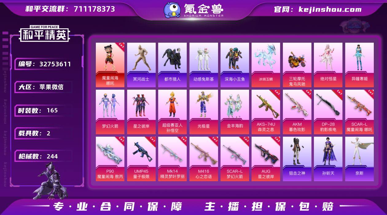 可二次实名【2级哪吒白木乃伊都市男神红眼罩11特效枪6粉装2载具身法素材号】 苹果V区-79710热力值-165套装-244枪皮 【1红装】 魔童闹海-哪吒(2级)【2载具】 鬼马风驰 冰绡玉鳞【5稀有】 木乃伊 都市猎人 红眼罩 Mark.06蓝螳螂 8号机粉螳螂【6粉装】 梦幻火箭 星之彼岸 绝对恒星 角色-光极星 角色-异瞳寒姬 金丰海韵【11特效枪】 M416-心之恋语(6级) AKS-74U-森灵之息(5级) AKM-暮色玫影(3级) Mk14-福马献瑞(5级) SCAR-L-梦幻火箭(5级) AUG-星之彼岸(5级) Mk14-精灵梦叶罗丽(5级) DP-28-豹影疾电(5级) P90-魔童闹海 敖丙(3级) SCAR-L-魔童闹海 哪吒(3级) UMP45-量子极限(5级)【255热门】 深海小丑鱼 暗影哥特(红眼罩) 浪漫天命 都市猎人(蓝口罩) 金羽特工 军刀雅典娜 极速红龙 冰公主 SS27特训 SS26特训 SS25特训 SS23特训 SS22特训 SS10特训 NV战队服 Mk47-洛神天依 Mini14-梦幻火箭 M24-百合蜜语 SCAR-L-玉兔迎春 GROZA-2B战斗服款 M762-天降萌叽 M762-彩虹符号 Mk47-乌木金纹 UZI-娇憨猪猪 UMP45-蓝色火焰 M249-彩虹符号 MG3-幻世战舞者 AKM-星之彼岸 M16A4-冥河战士 M416-暗夜行者 鹰眼刺客 M416-蓝色火焰 破蛋小黄鸡 长空猛禽 夏日倾情 青年教官 牛气冲天 霓虹街区 活力之...