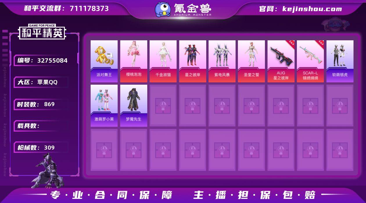 【稀有枪皮】AUG-暖羊咩咩,AMR-智耀战神,14-甜梦熊击,GROZA-镜光银凌,Kar98K-巳巳如意,ACE32-萌骑漫游,14-福马献瑞,AKS-74U-森灵之息,DP-28-豹影疾电,蜜獾-异瞳寒姬,M249-绝对恒星,AUG星之彼岸,SCAR-L-锦绣绵绵