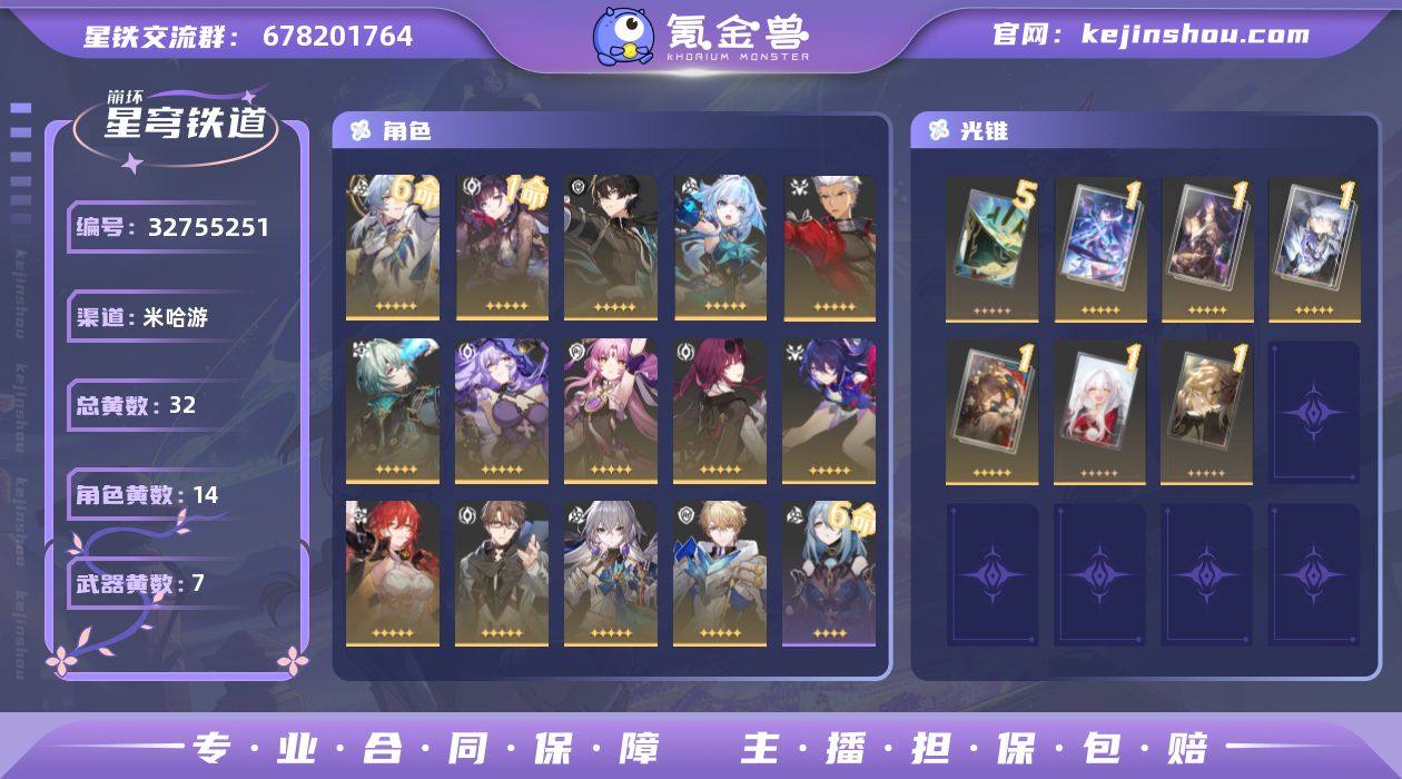 【崩坏·星穹铁道】冒险等级:68,男主,五星数量:21,五星角色:星期日 * 6命,海瑟音 * 1命,希儿,布洛妮娅,姬子,杰帕德,瓦尔特,卡芙卡,符玄,黑天鹅,那刻夏,Archer,刻律德菈,丹恒·腾荒__五星光锥:星海巡航 * 5精,无可取代的东西,如泥酣眠,回到大地的飞行,向着不可追问处,镜中故我,海洋为何而歌__四星角色:黑塔 * 6命,丹恒 * 6命,停云 * 6命,三月七 * 6命,青雀 * 6命,驭空 * 6命,寒鸦 * 6命,佩拉 * 5命,希露瓦 * 3命,桑博 * 2命,娜塔莎 * 1命,艾丝妲 * 1命,卢卡 * 1命,貊泽,虎克,玲可,雪衣,米沙,加拉赫 满命白厄队,dot队