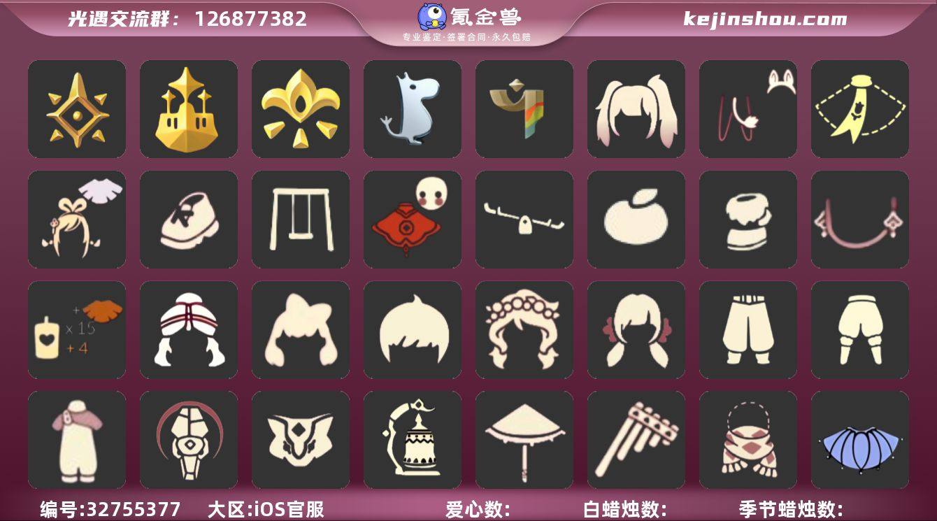 账号类型: 手机账号 季节已毕业: 预言季,梦想季,集结季,姆明季,彩染季 完成地图: 晨岛,云野,雨林,霞谷,暮土,禁阁,全图毕业 珍稀物品: 阿努比斯(狗头) 礼包: 围巾,绊爱,运动鞋,秋千,福娃,跷跷板,橘子,雪人鞋,新年耳钉,创始人,姆明饰品套装,渐变双马尾发型礼包 裤子: 武士裤,背带裤,白棉裤 面具: 黄鼠狼,阿努比斯 项链: 围巾 发型: 蝴蝶结,正太,樱花,公主头 头饰: 花环 斗篷: 白金,红金,花瓣斗篷,荧蓝斗篷 配饰: 雨伞,排箫,大铃铛乐器 亮点: 重塑药水56